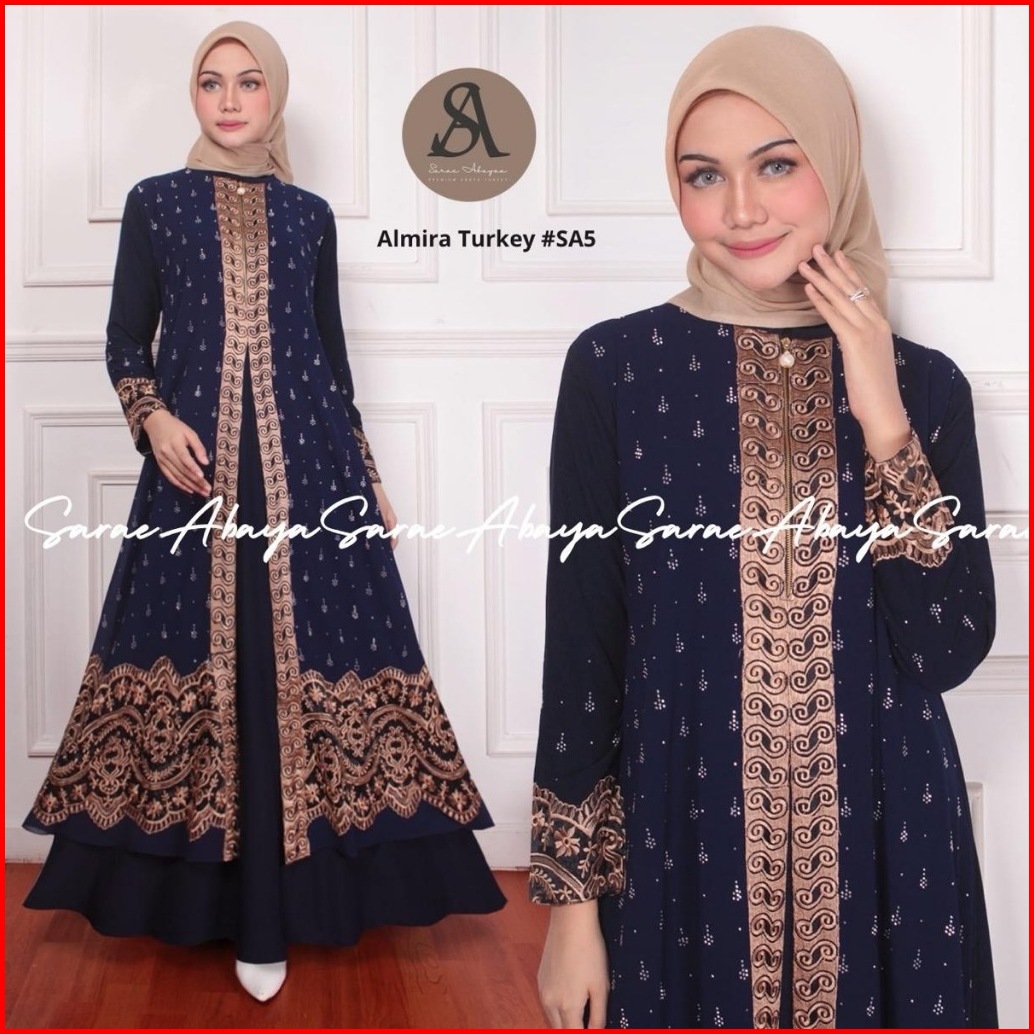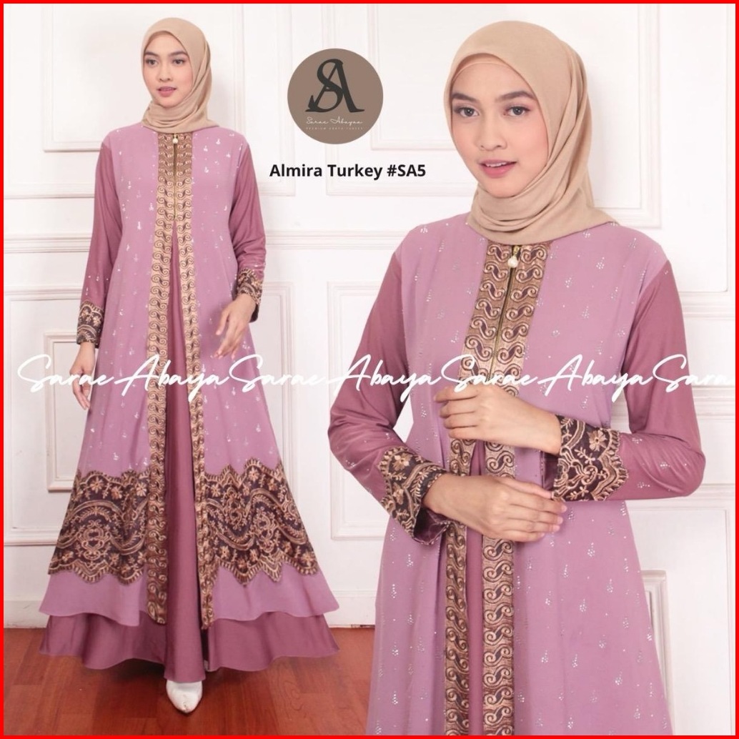 Sarae Abaya Turkey Premium Almira Sa-5 Gamis Bordir Payet Ceruty Turki Hitam Mewah Elegan Ceruti