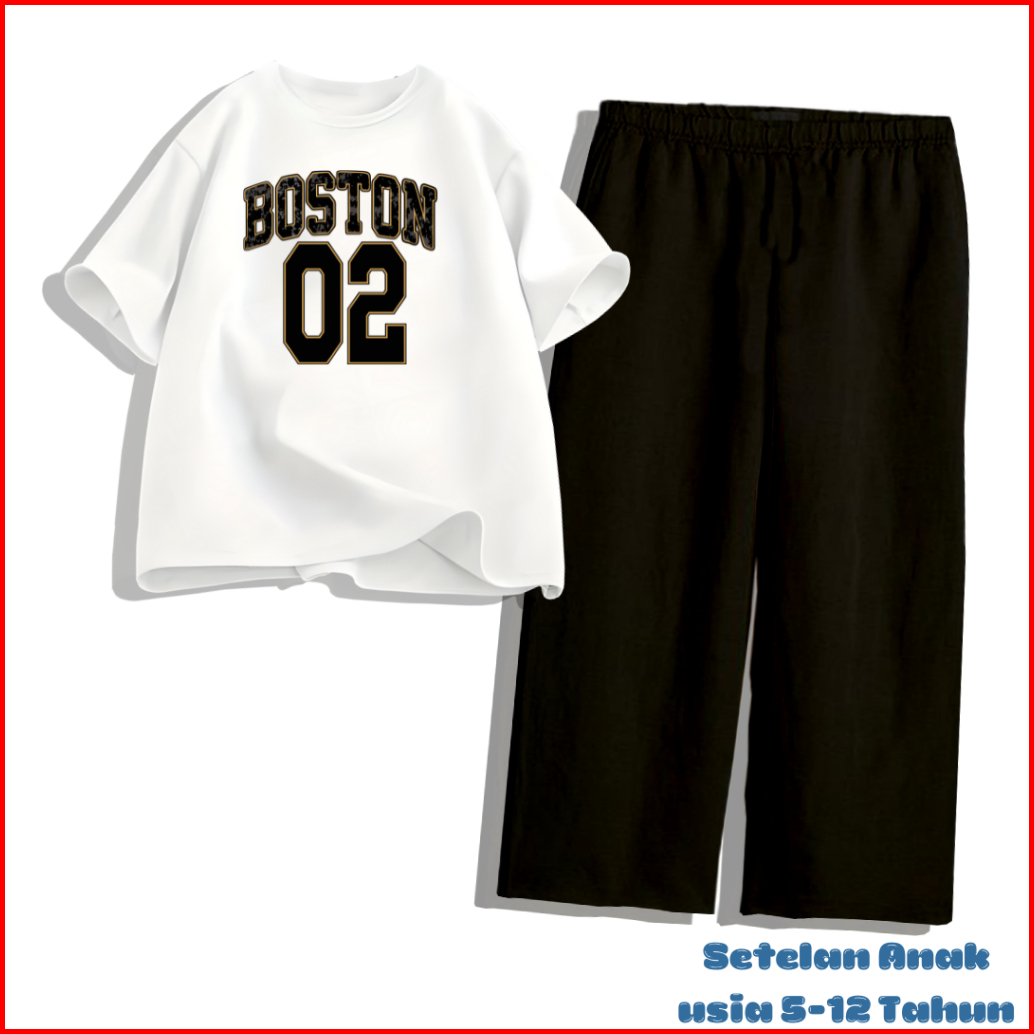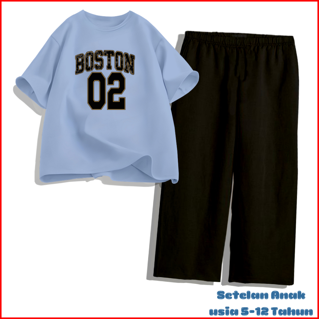 Setelan Anak Baju Celana Kulot Panjang Usia 5-12 Tahun Boston 02