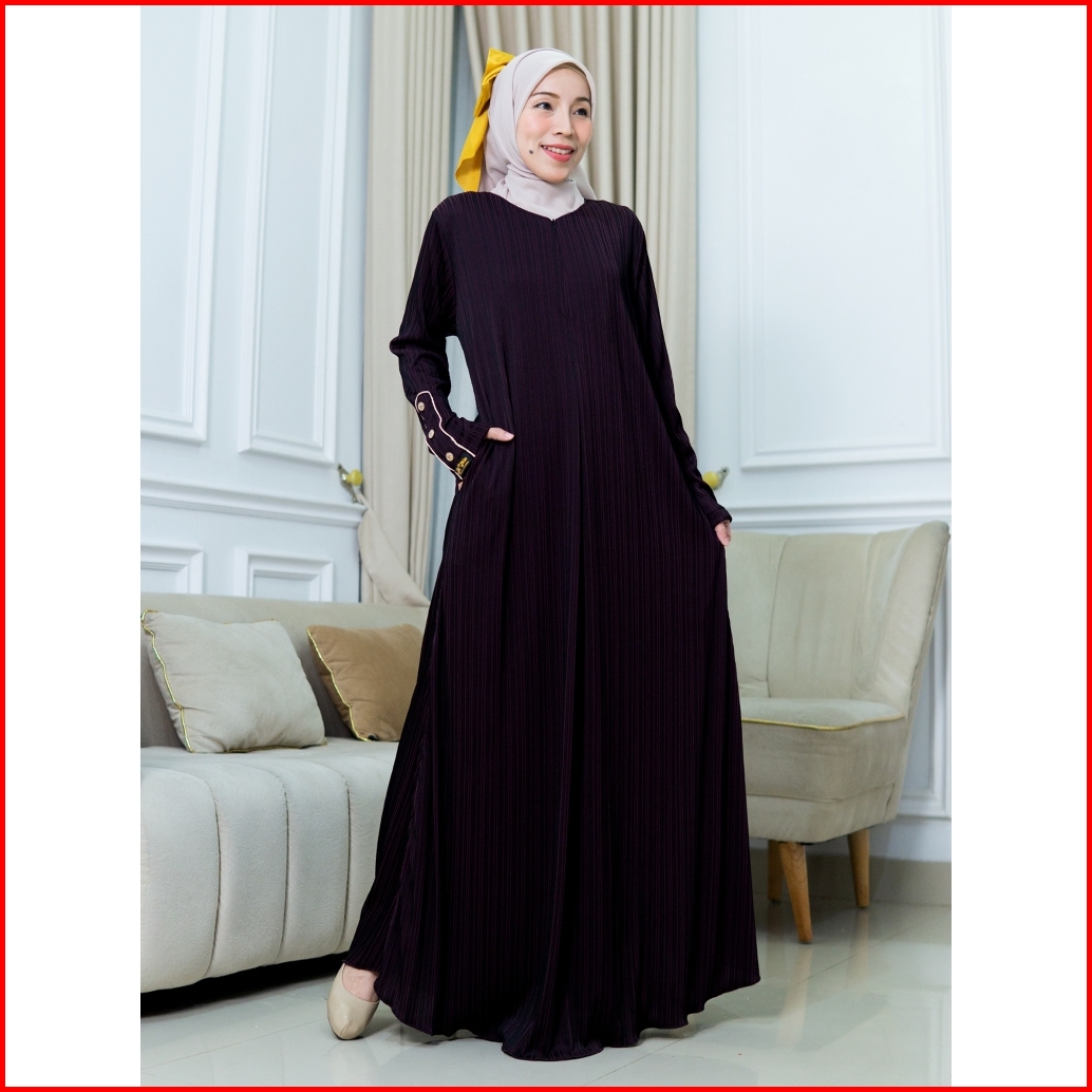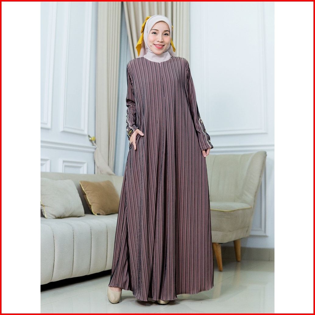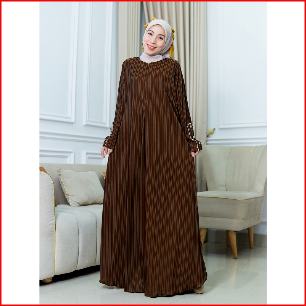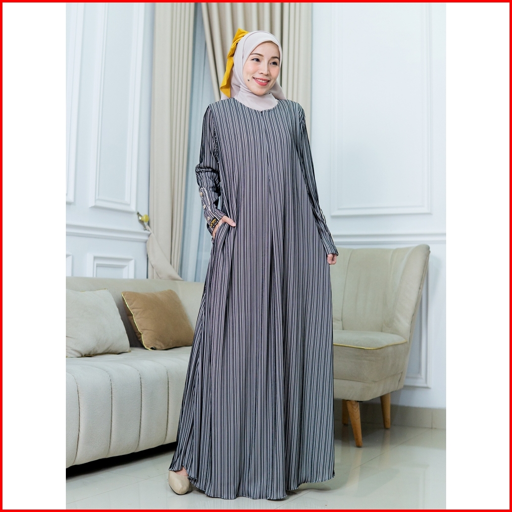 Ameera Dress Luxe Strip Baju Gamis Daily Bahan Kordru Size S-m-l Xl-3l Streetch Flowly Elegant