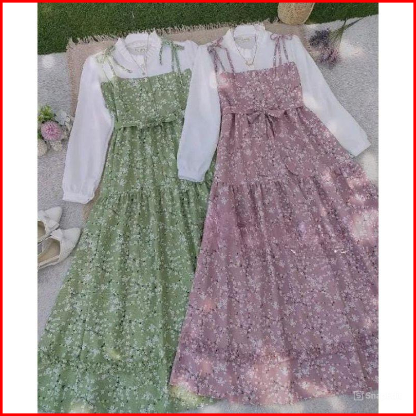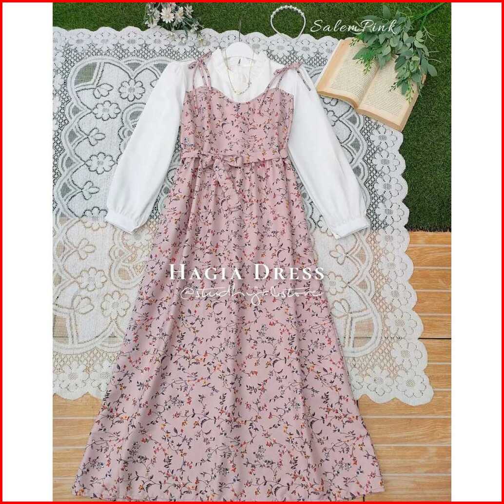 Korean Dress Hagia Floral Resleting Depan Katun S-xl