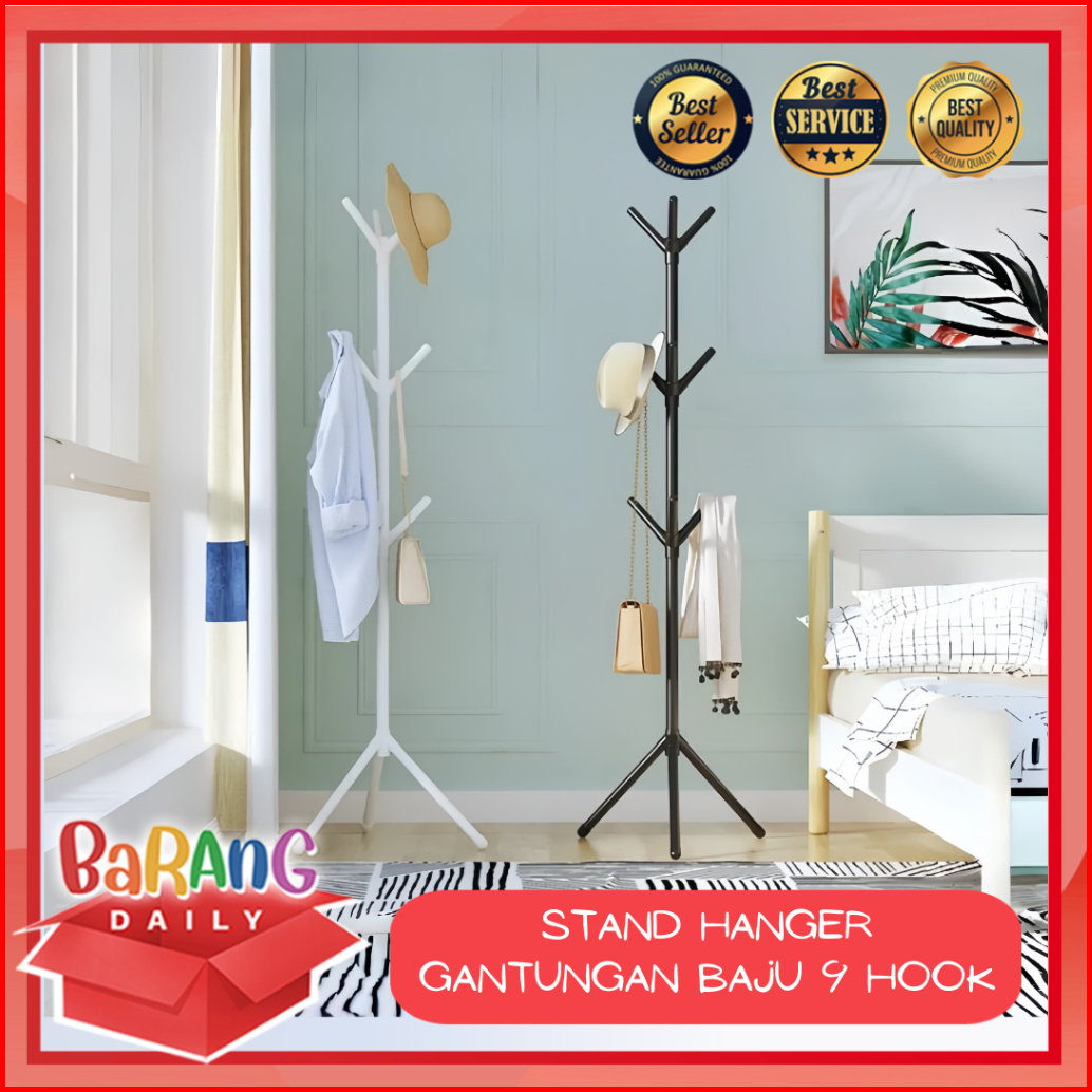 Ready Standing Hanger Gantungan Baju 9 Hook Tiang Berdiri Stand Hanger Serbaguna Gantungan Tas Topi Baju Pakaian