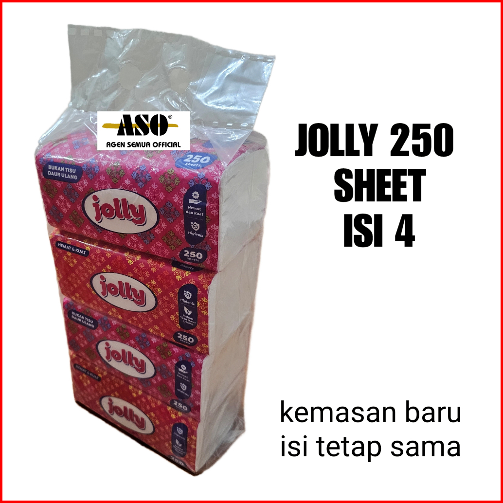 Paket Isi 4 Tisu Tissue Jolly 250 Sheet 2ply Kemasan Baru Isi Tetap Sama Promo