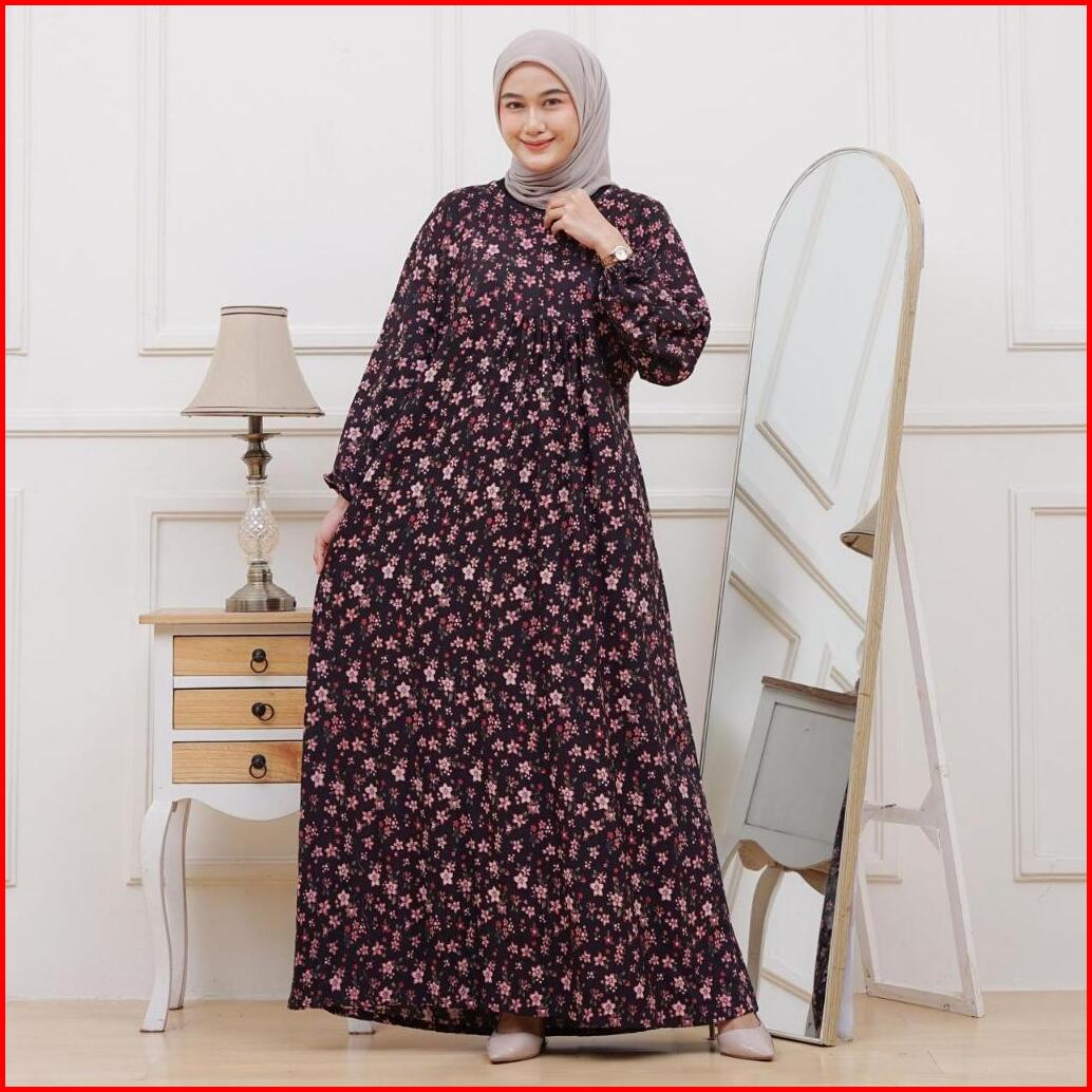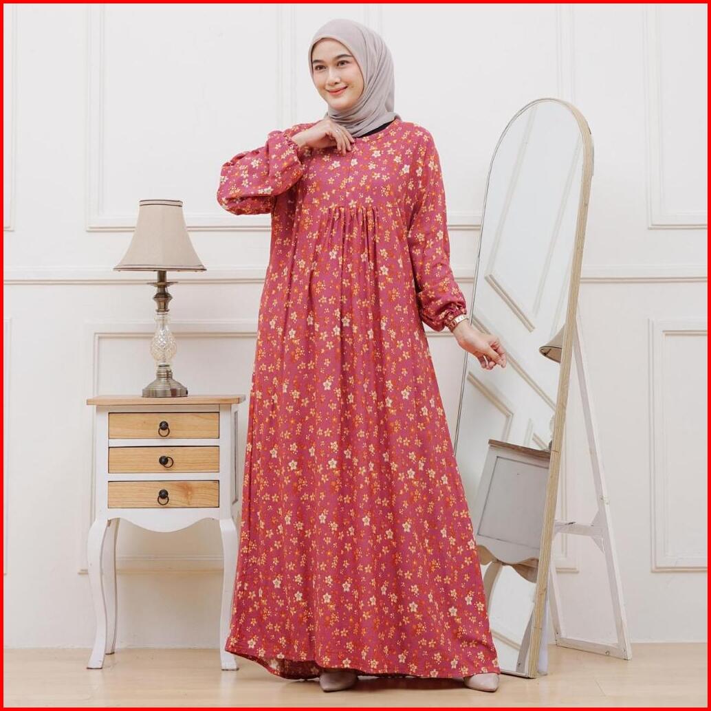 Dress Rinti Motif Inara Bunga Bunga Gamis Busui Frendly