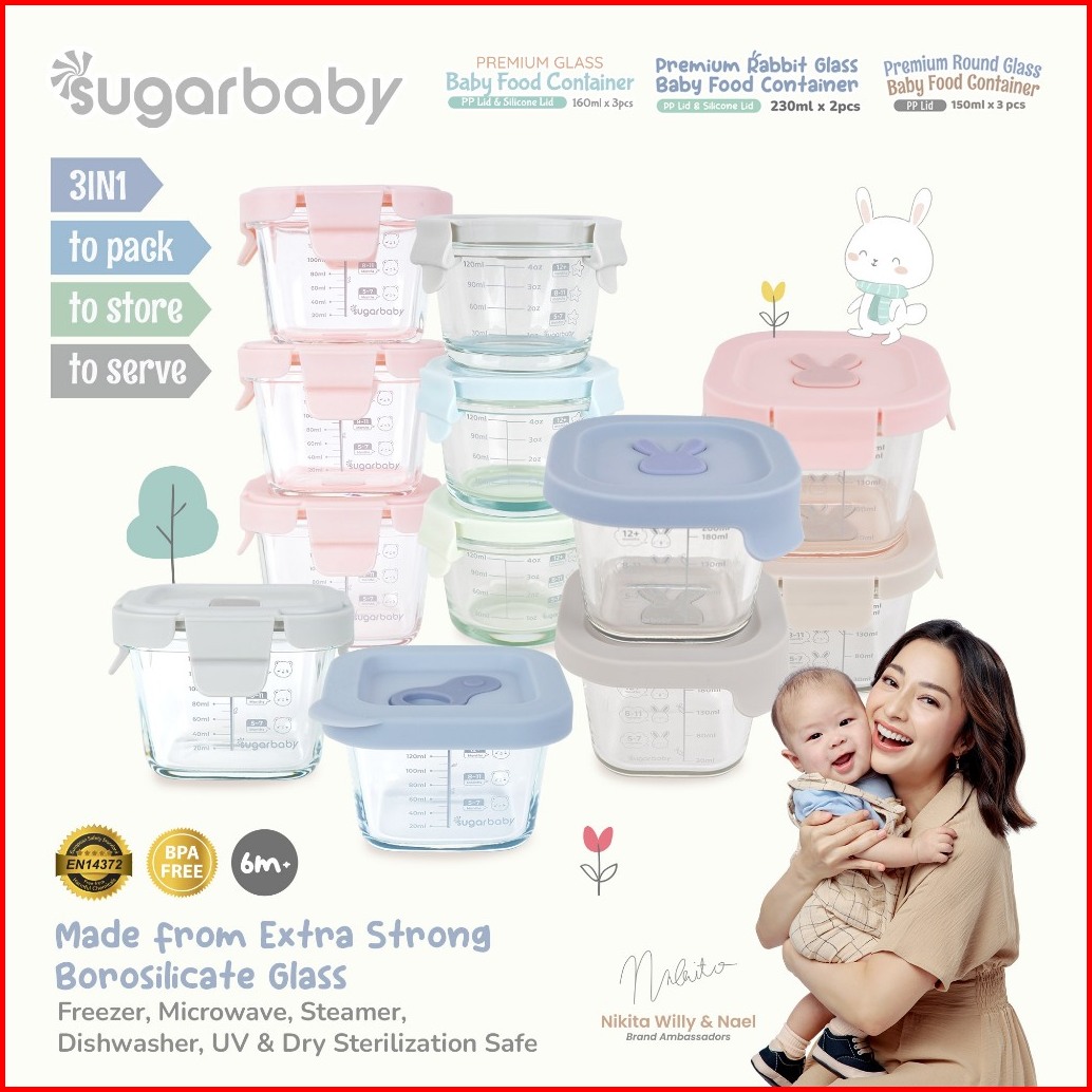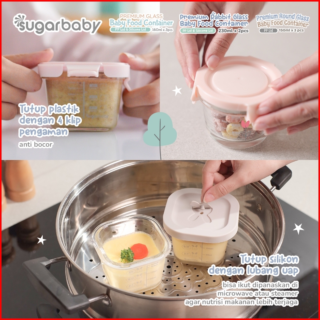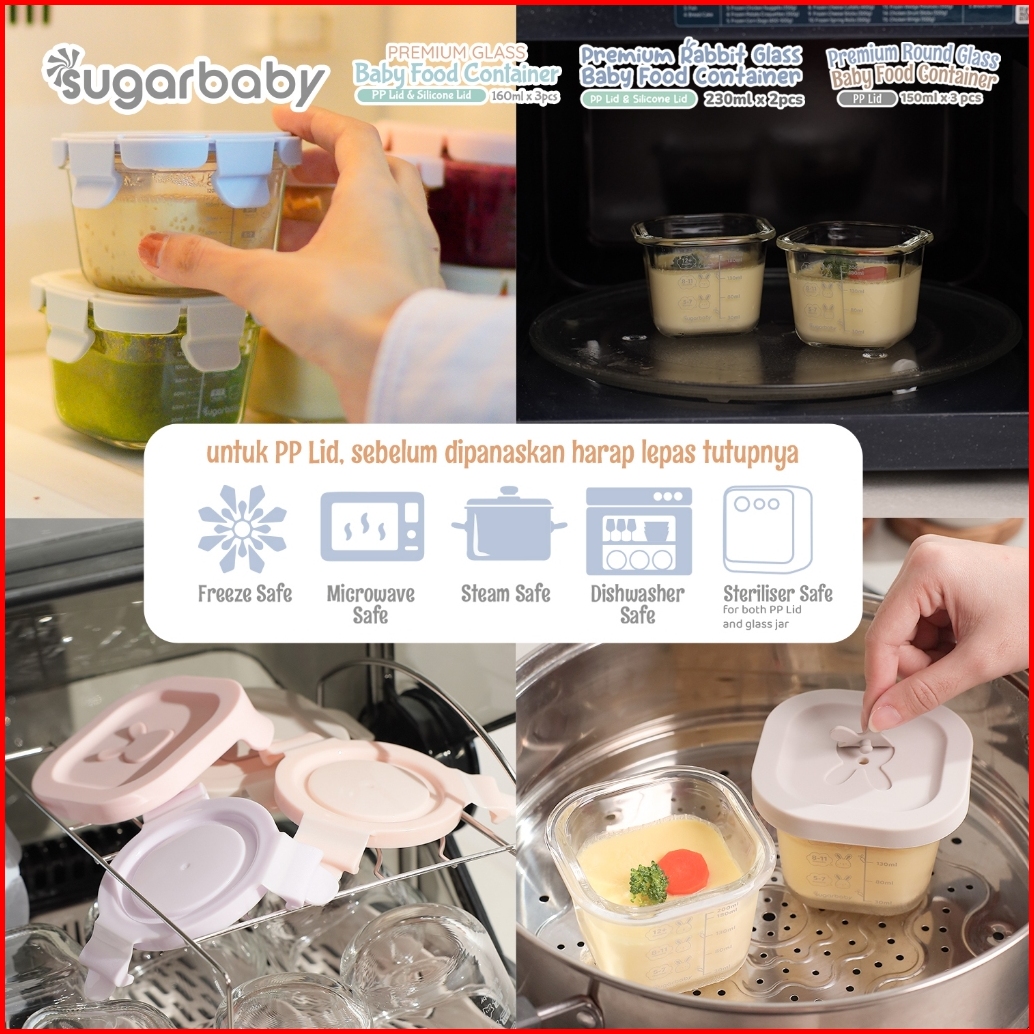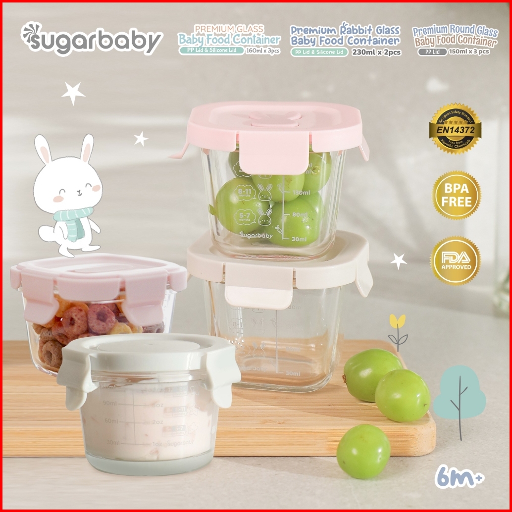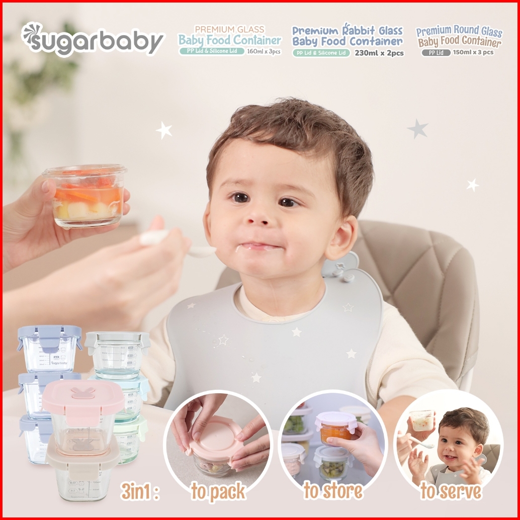 Sugarbaby Premium Glass Jar Baby Food Container 3 Pcs Bpa Free Peralatan Makan Bayi Mpasi Wadah Mangkok Bayi Silicone Li