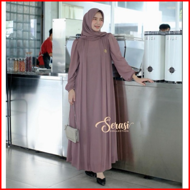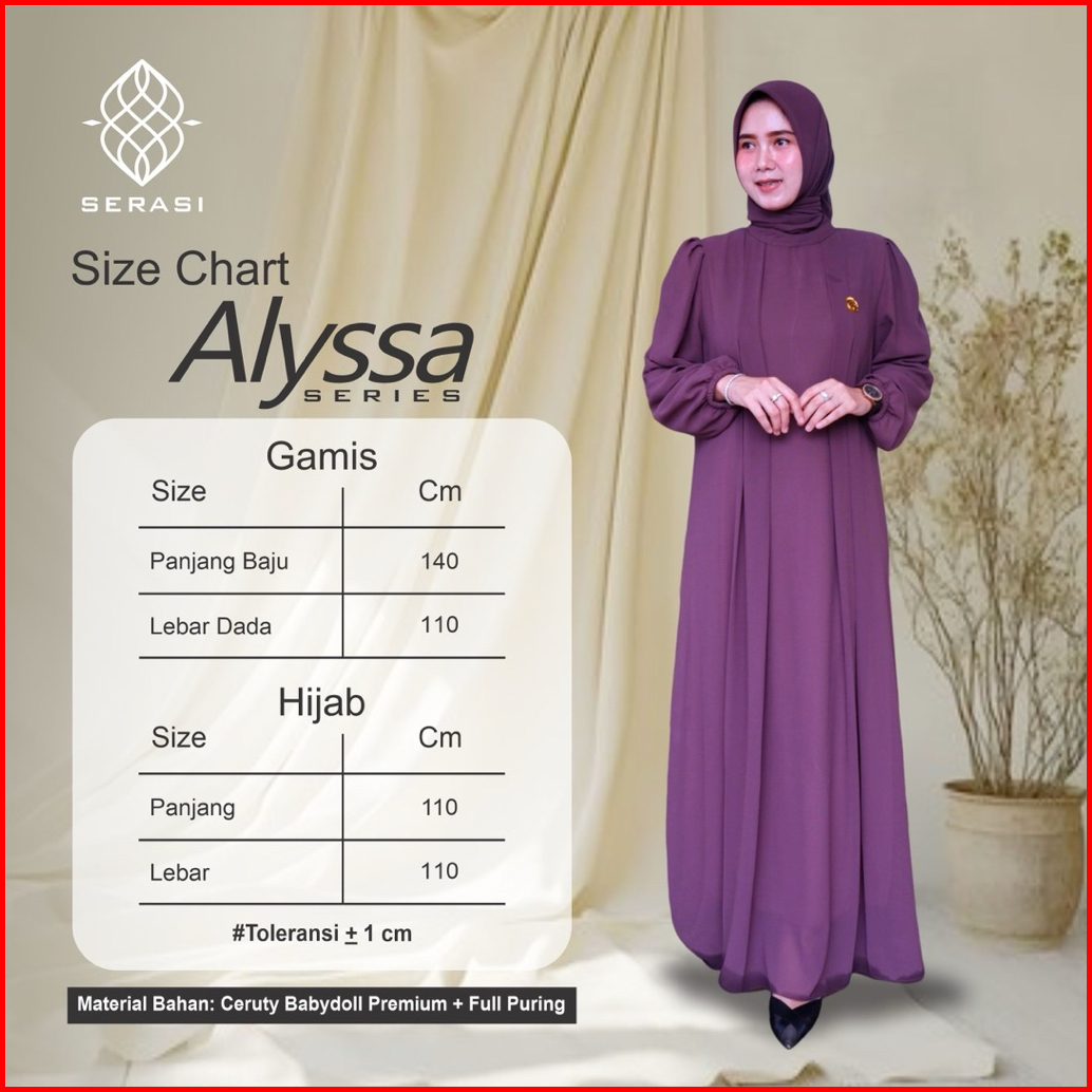 Alyssa Dress Set Hijab Gamis Muslim Lebaran Syari Simpel Mewah Ceruty Babydoll Premium Full Puring