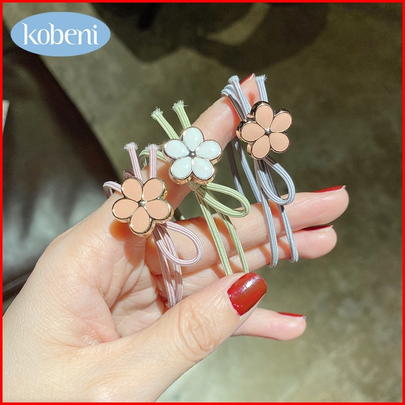 Indonesia Stock Kobeni Ikat Rambut Karet Motif Bunga Aksesoris Rambut Wanita Simple
