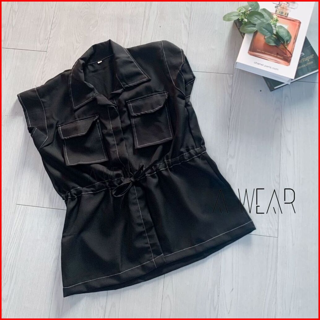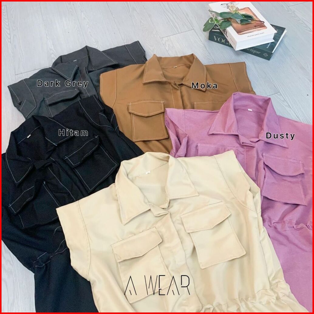 A Wear - Ghea Top Outer Tangan Pendek Pocket Shirt Semiwoll