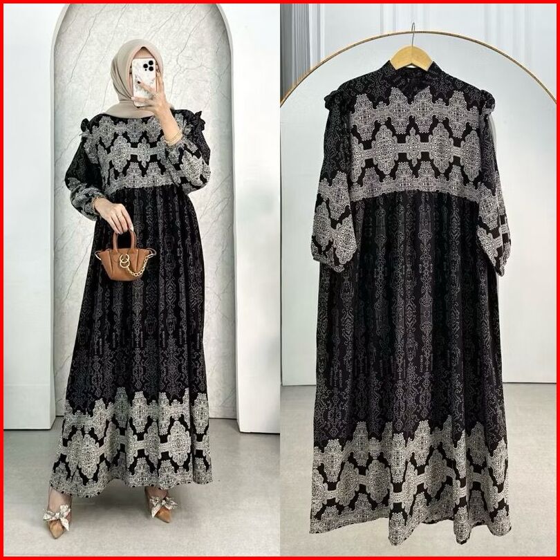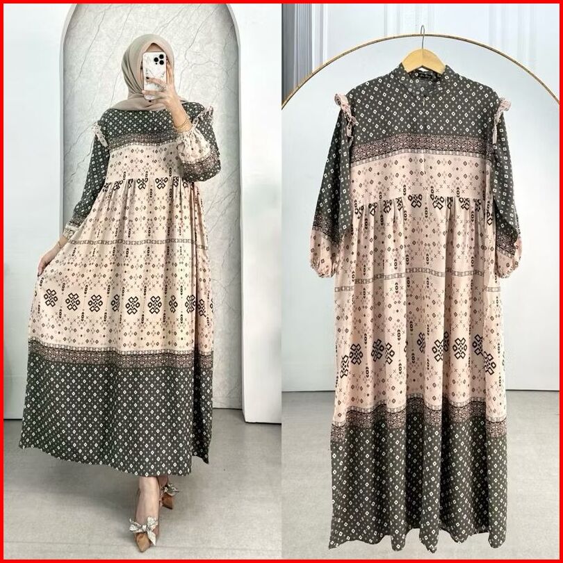 Dress Viola Motif Rayon Diamond Gamis Wanita Motif Kain Rayon Diamond Elegan