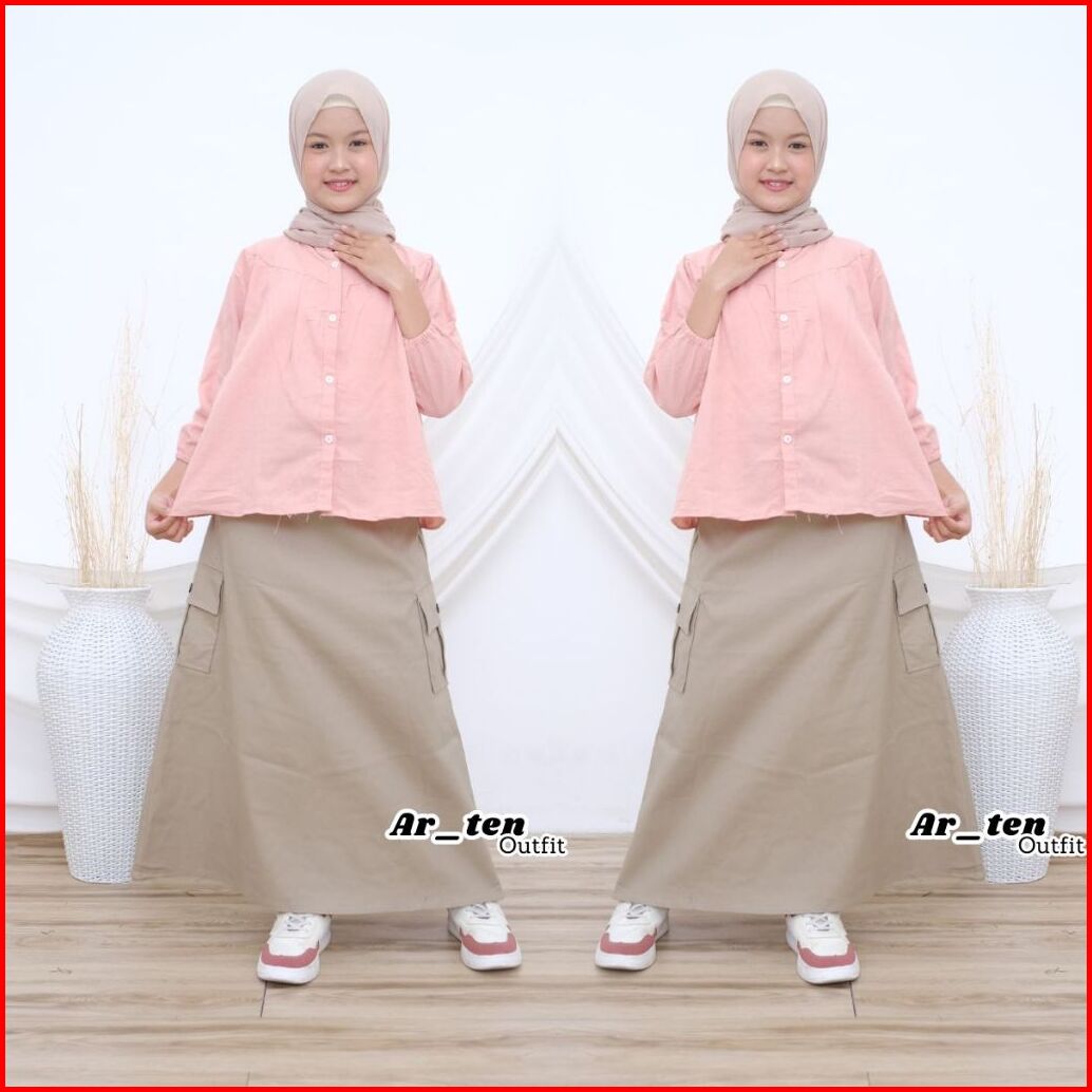 Setelan Cargo Anak Perempuan Set Rok Cargo Anak Perempuan 6-14 Tahun Setelan Rok Cargo Anak