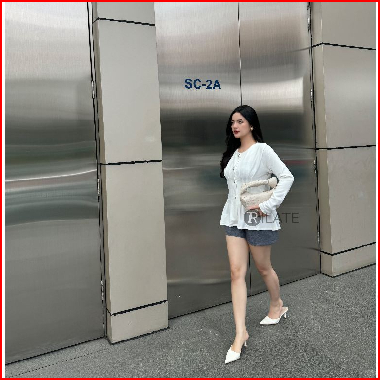 Davina Blouse Knit Atasan Wanita Body Slim Fit Lengan Panjang Kancing