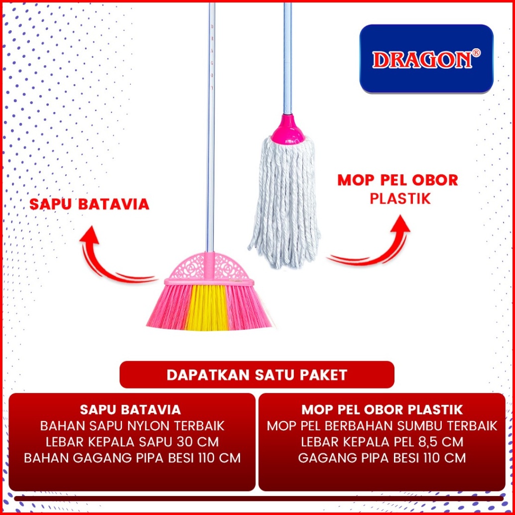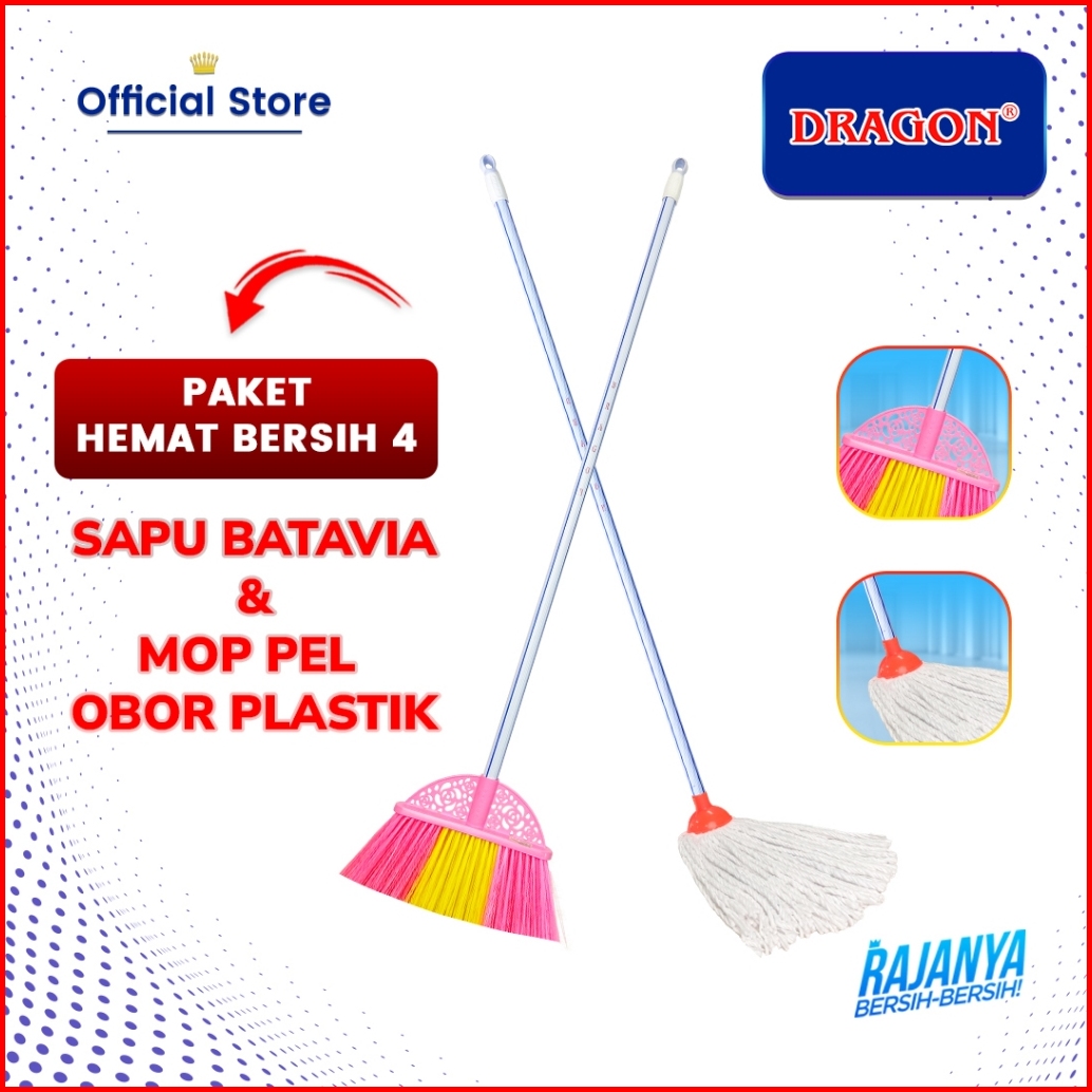 Dragon Bundling Hemat Bersih 4 Sapu Batavia Mop Pel Obor Plastik Pkt012