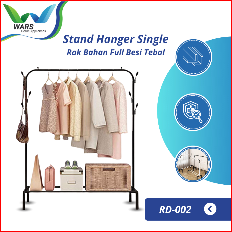 Wars Rak Gantungan Baju Stand Hanger Single Bahan Full Besi Tebal