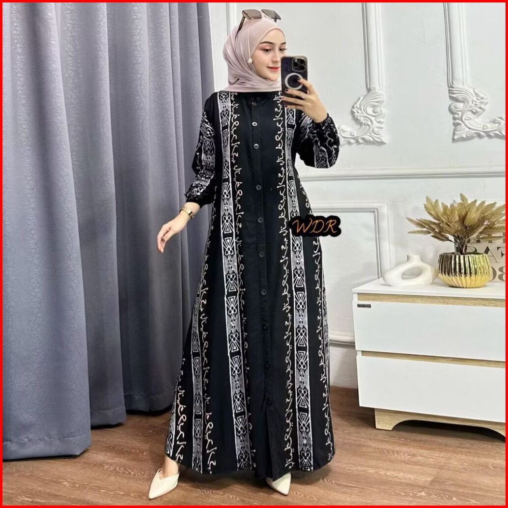 Gamis Twill Rayon Premium Ori Pekalongan Gamis Twill Jumbo Model Full Kancing Depan