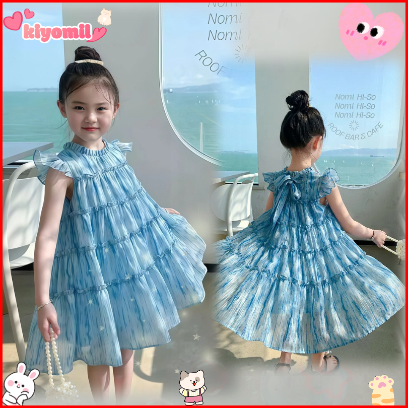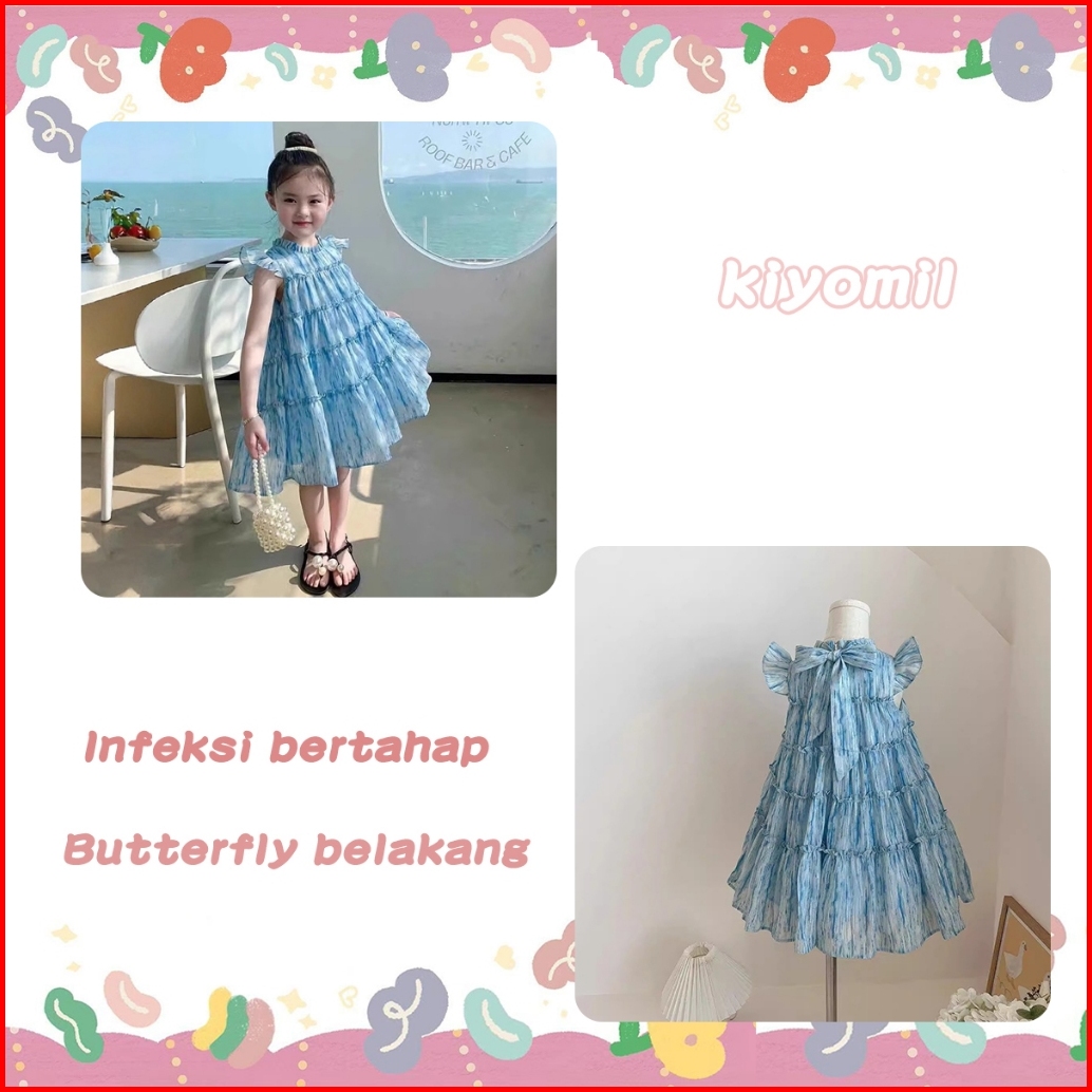 Kiyomil Dress Anak Perempuan Dress Anak Perempuan Klasik Detil Renda Halus Warna Biru Elegan