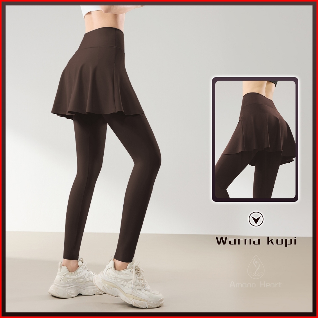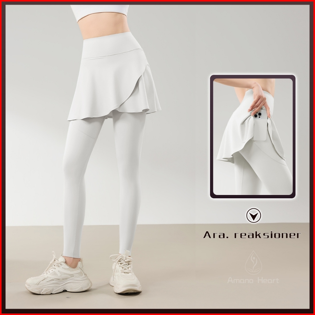 Amanoheart Rok Celana Yoga 2-in-1 Dengan Saku Hitam Biru Putih Sporty High Waist Legging Gym Jogging Bawah Celana Kulot