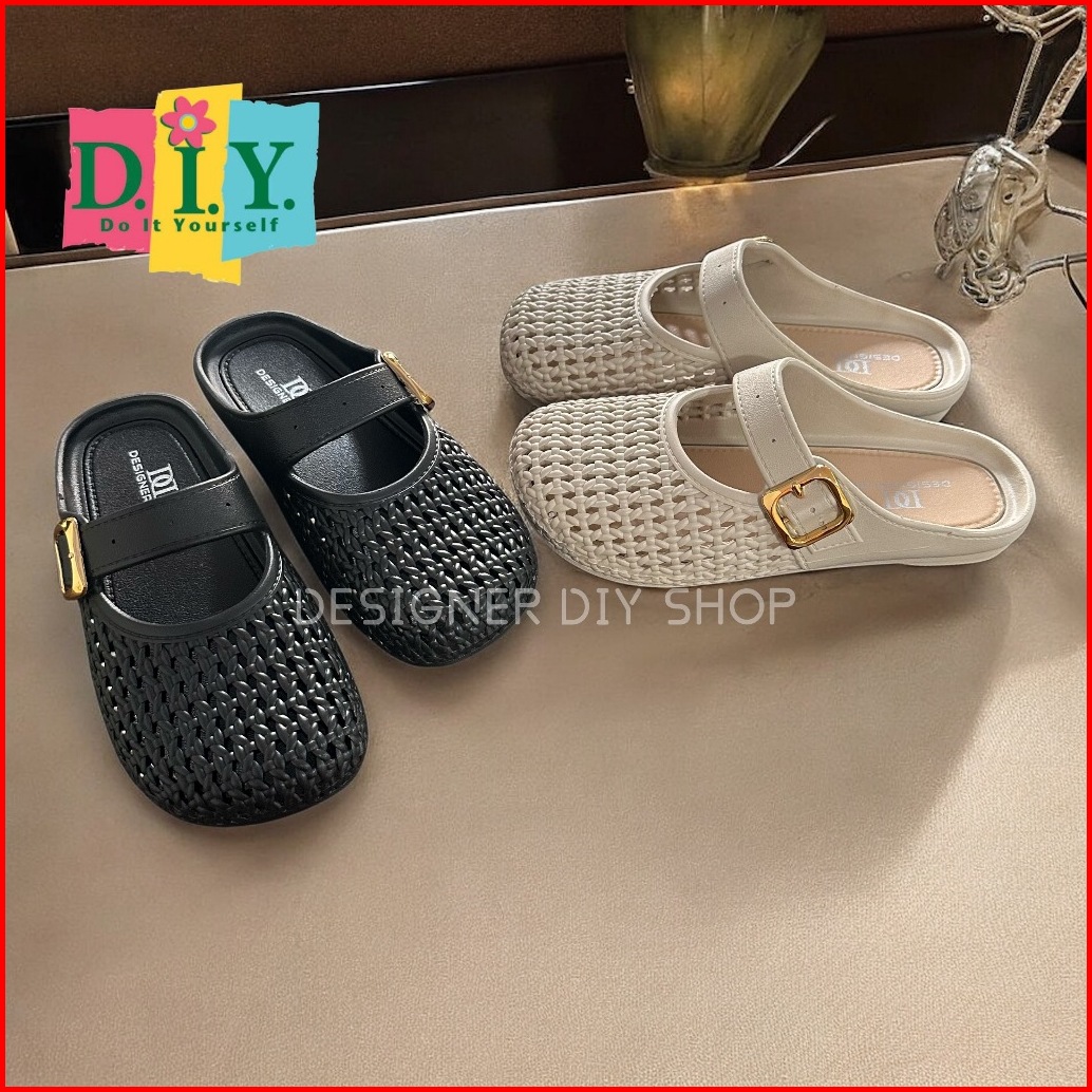 D.i.y Sandal Flat Jelly Sendal Wanita Elegan Korea Premium Slip On Model Rajut Sandal Selop Model Terbaru