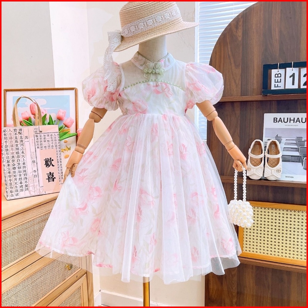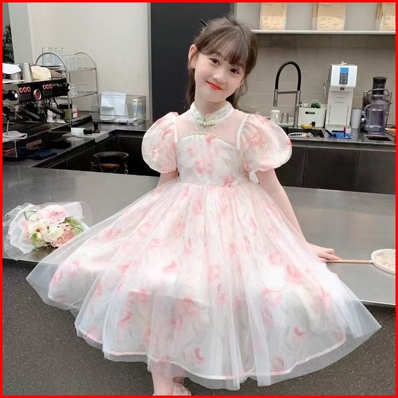 Princess Kesli 2-11 Tahun Gaun Cheongsam Motif Bunga Gaya Pastoral Musim Panas Sifon Untuk Anak Perempuan 2025 Gaun Putr