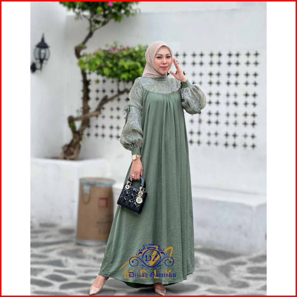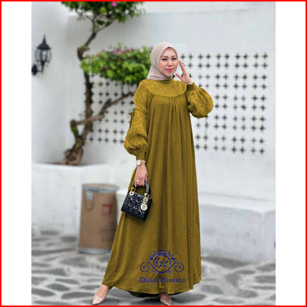 Dizzah Gamisku Andini Dress Gamis Polo Linen Mix Brukat Model Elegan