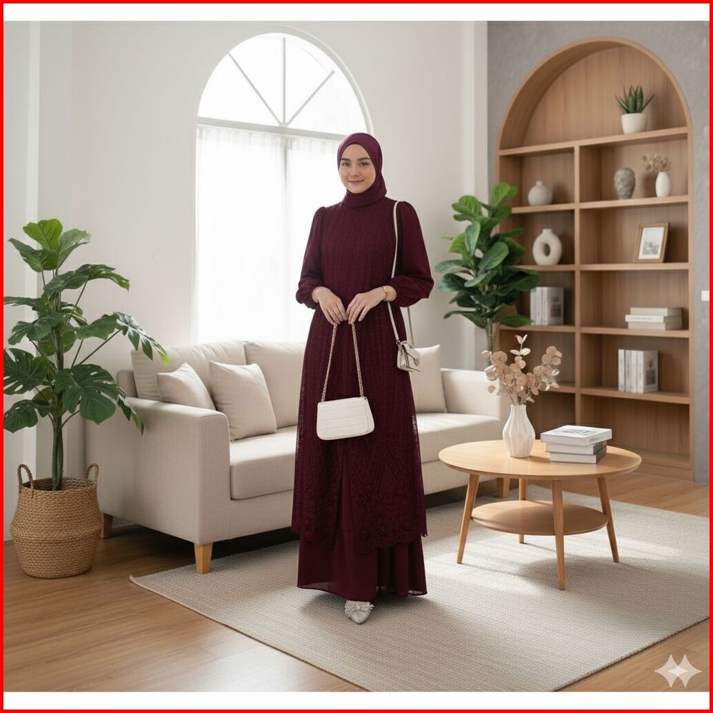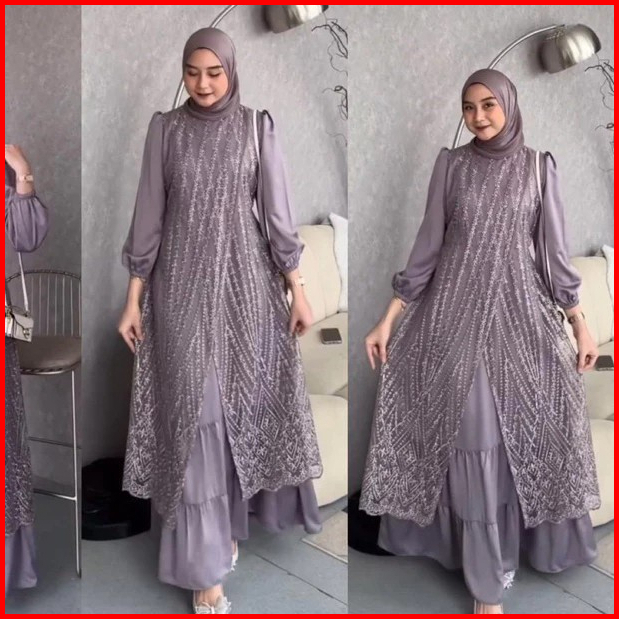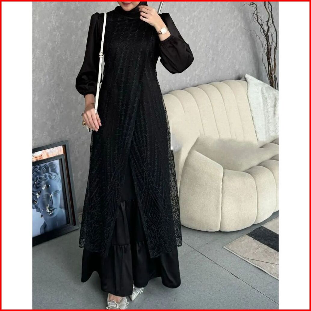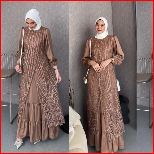 Fuji Dress Pesta Brukat Tille Premium Lebaran Gamis Pesta Mewah Bahan Maxmara Mix Brokat Timbul Terbaru 2025