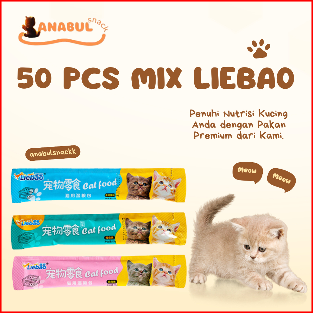 Liebao Paket Makanan Kucing 50 Biji Rasa Ayam Ikan Tuna Ikan . 50 Rasa Mix Asli Dari China