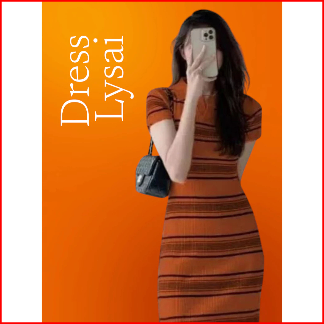 Dress Rajut Lisai Strip Kerah Polo Salur Knitwear Premium Quality