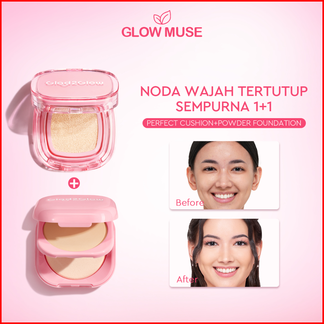 100 Ori Glad2glow Perfect Blurring Powder Foundation Perfect Cover Cushion Foundation Setting Waterproof Concealer Oil-c