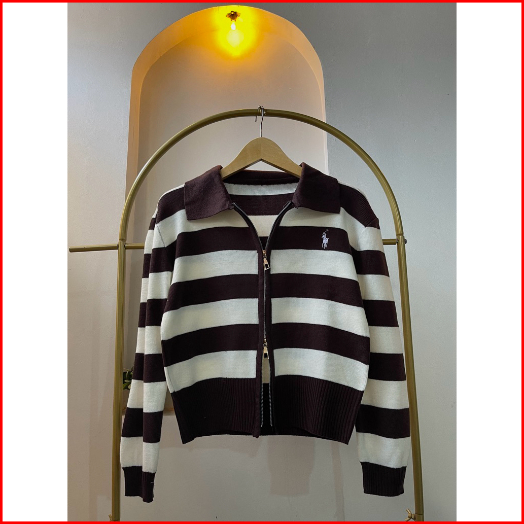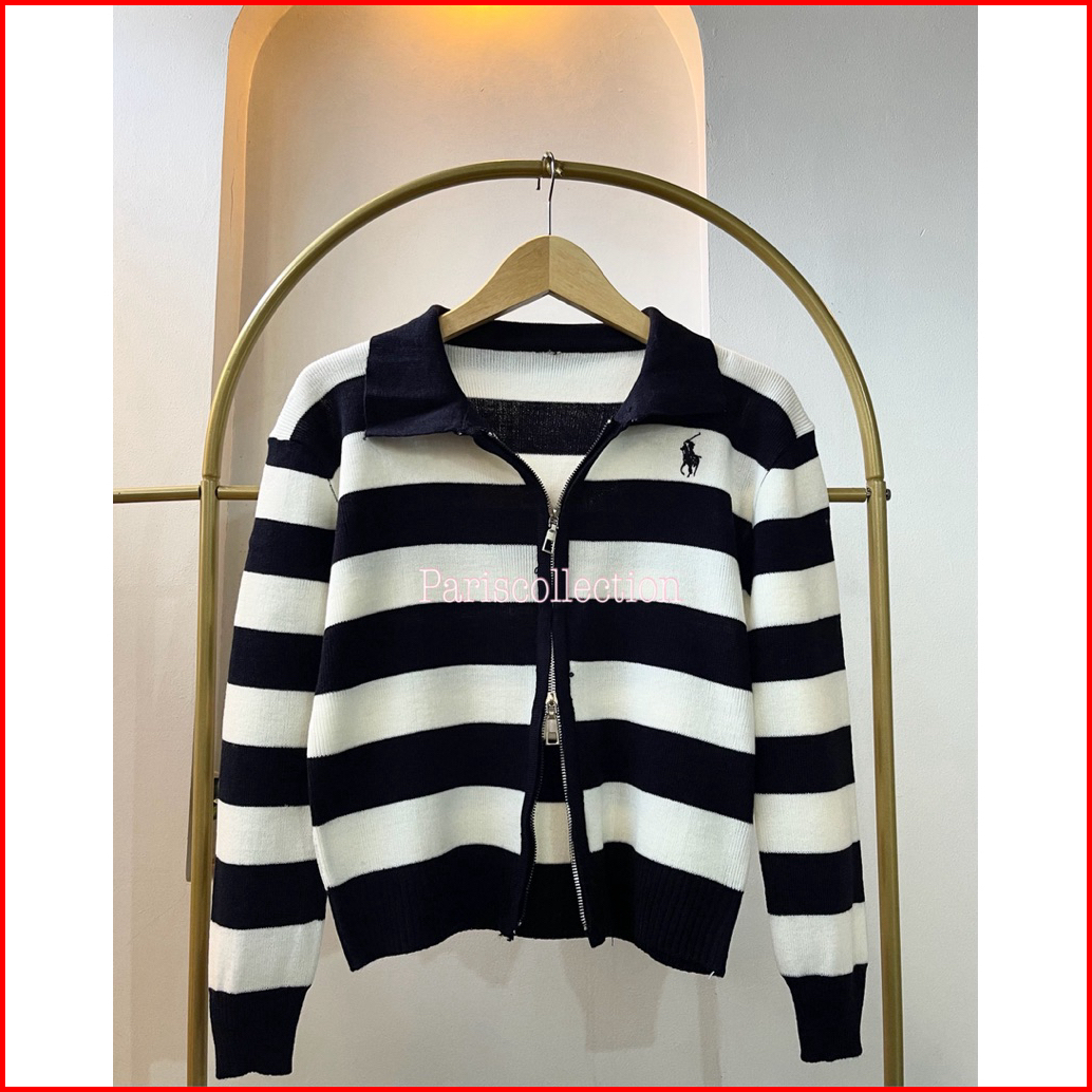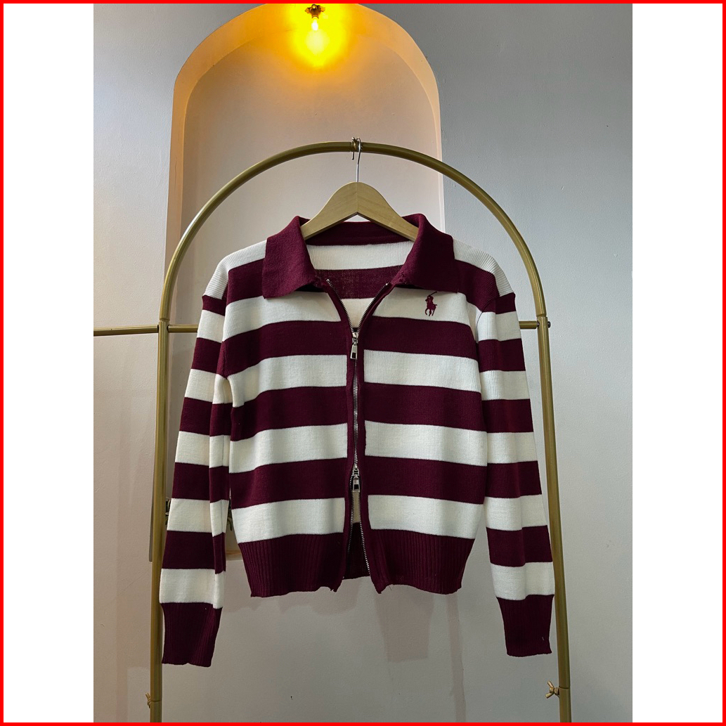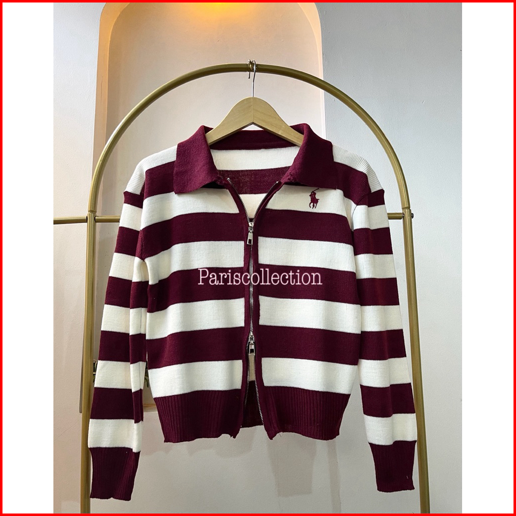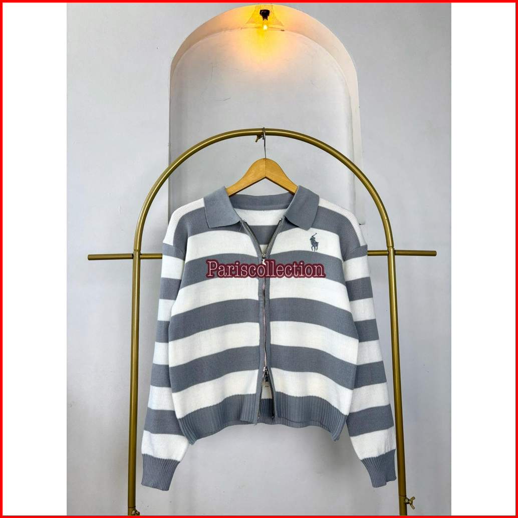 Parris Sweater Cardigan Rajut Resleting Doblle Ziper Salur Olop Berkerah Premium