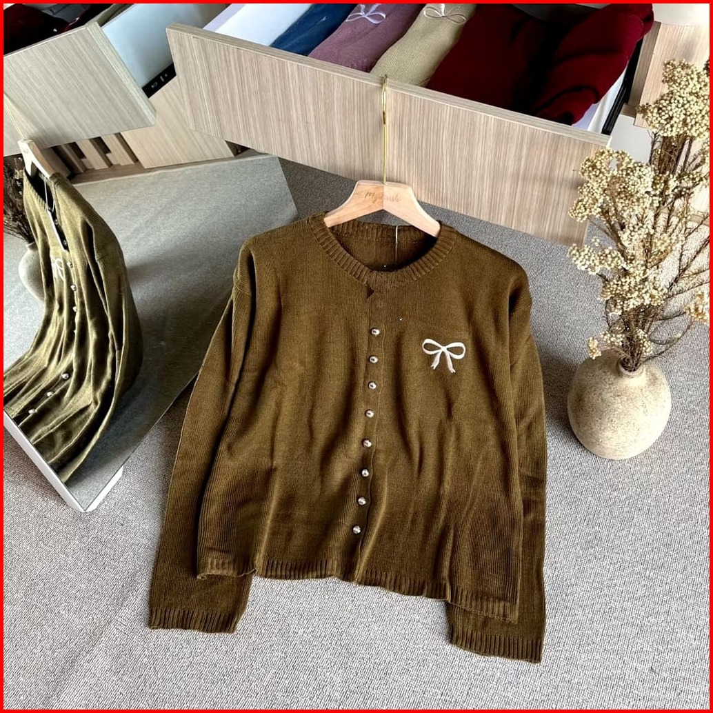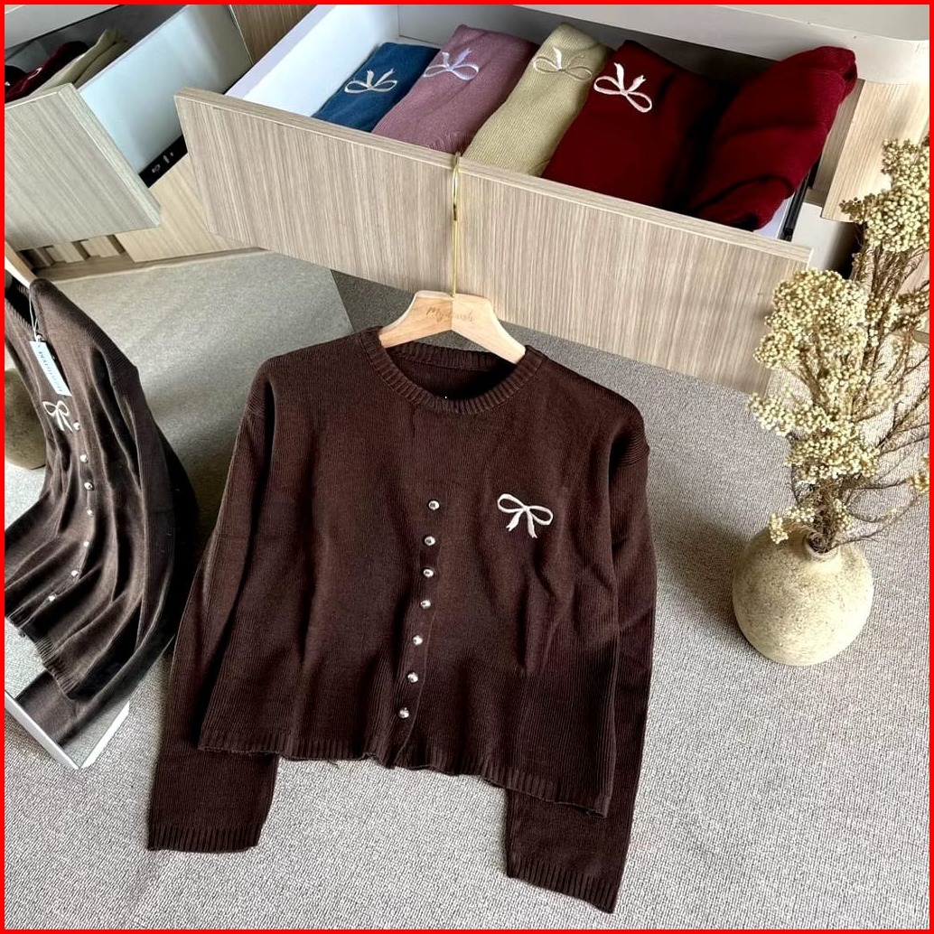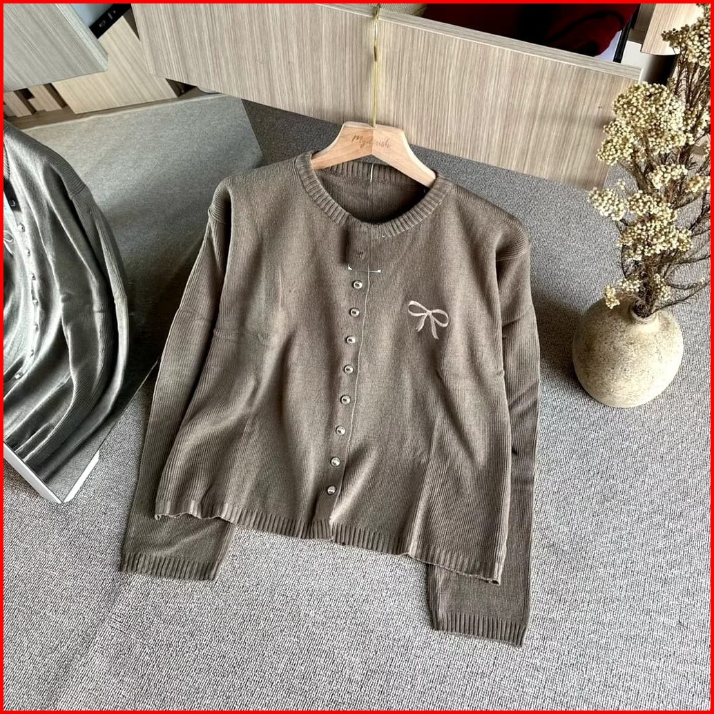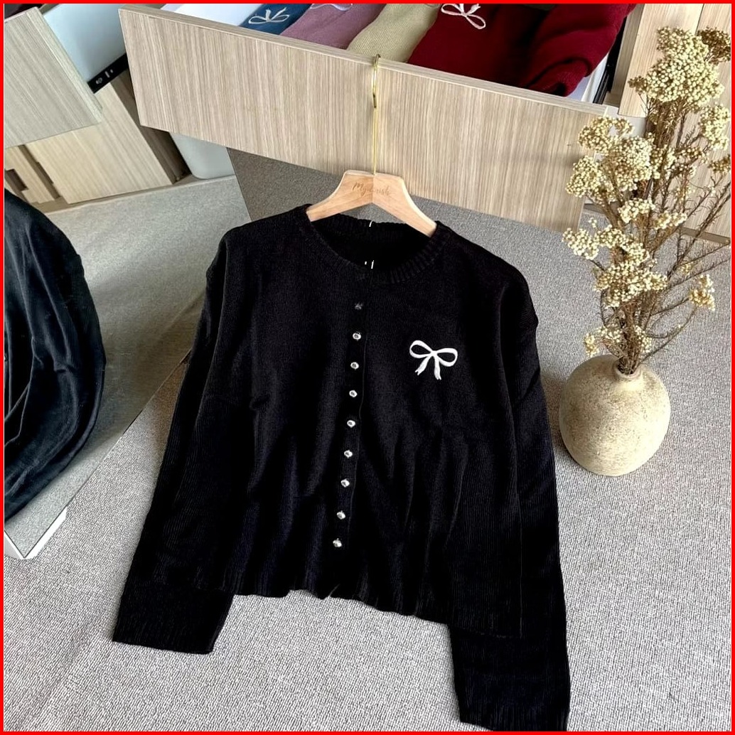 Knitwear Korean Style Cardigan Rajut Wanita Variasi Pita Bordir Tops Oversize