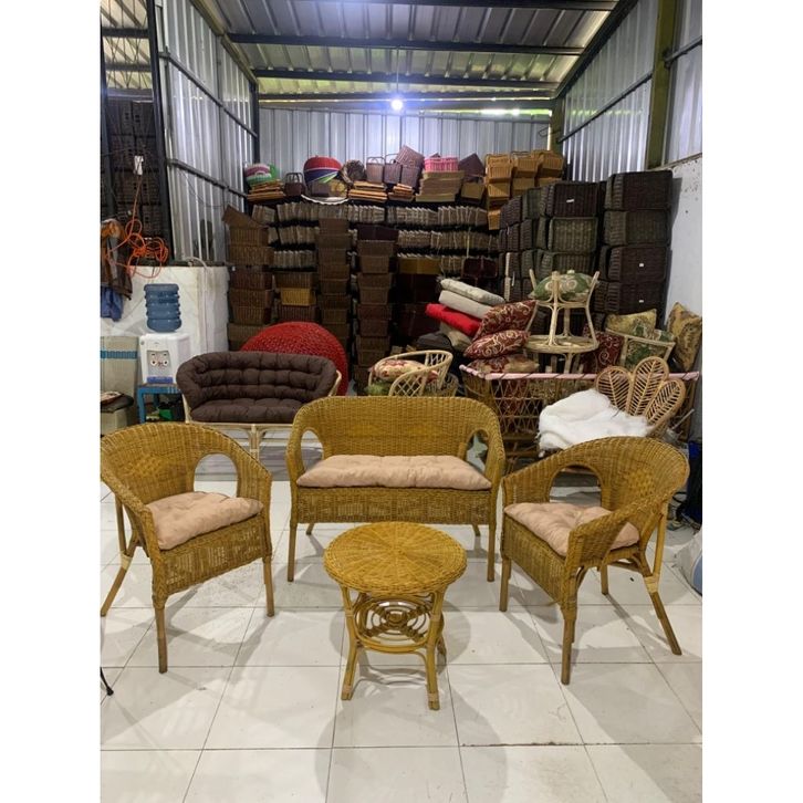 Kursi Bangku Rotan Furniture 1set sofa rotan Perlengkapan R Tamu Rumah