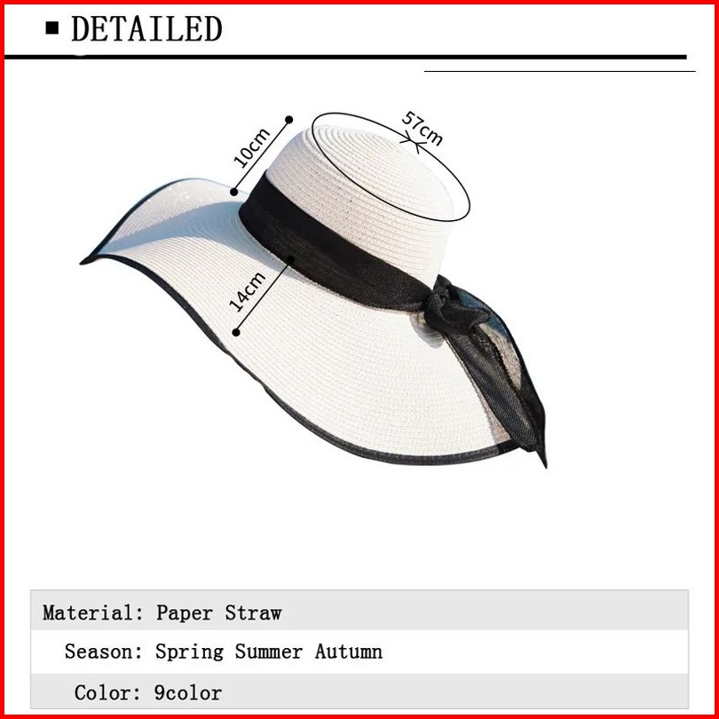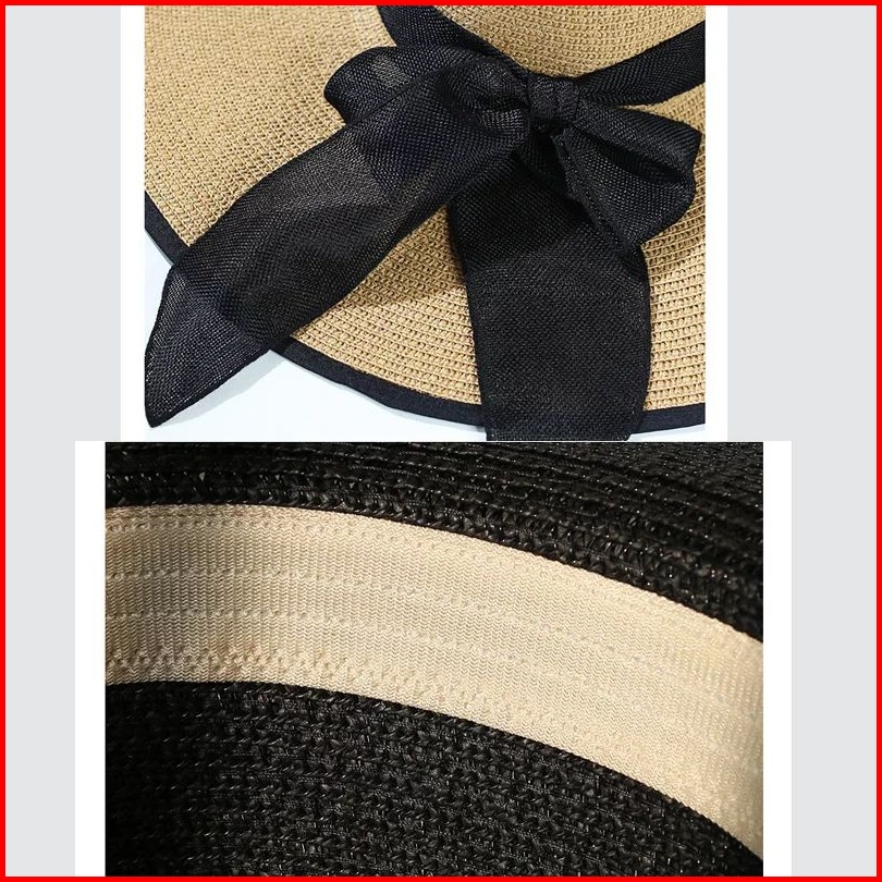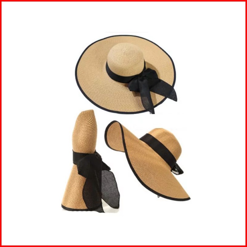Topi Pantai Lebar Import Pita Strip Hitam