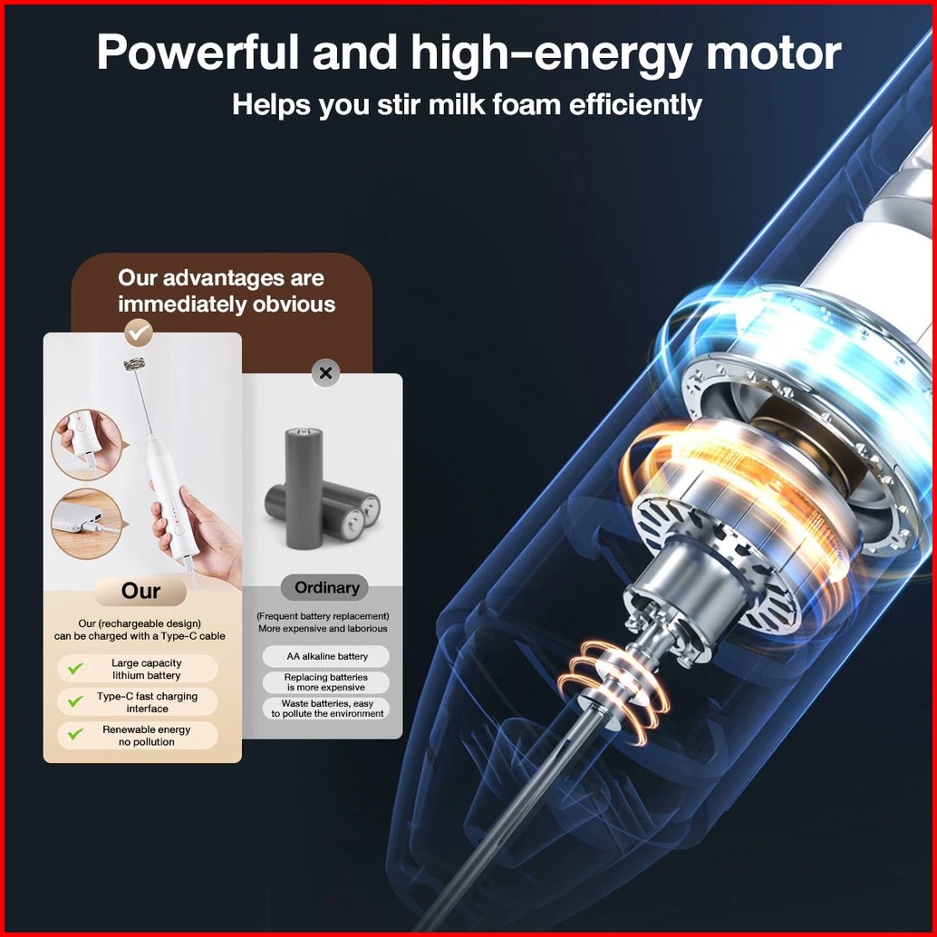 Milk Frother Hand Mixer Pengaduk Kopi Electric Portable Alat Kocok Telur Elektrik Pengaduk Kopi