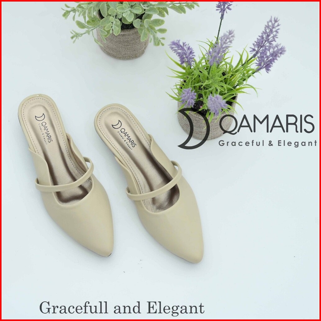 Qamaris Sepatu Sandal Mules Wanita Heels 3cm Model Kekinian Cocok Untuk Kerja Hangout