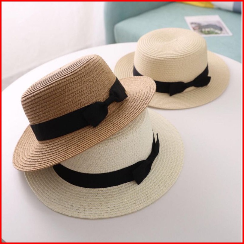 Bh3d - Boater Hat Pita Hitam Dewasa Topi Pantai Bulat