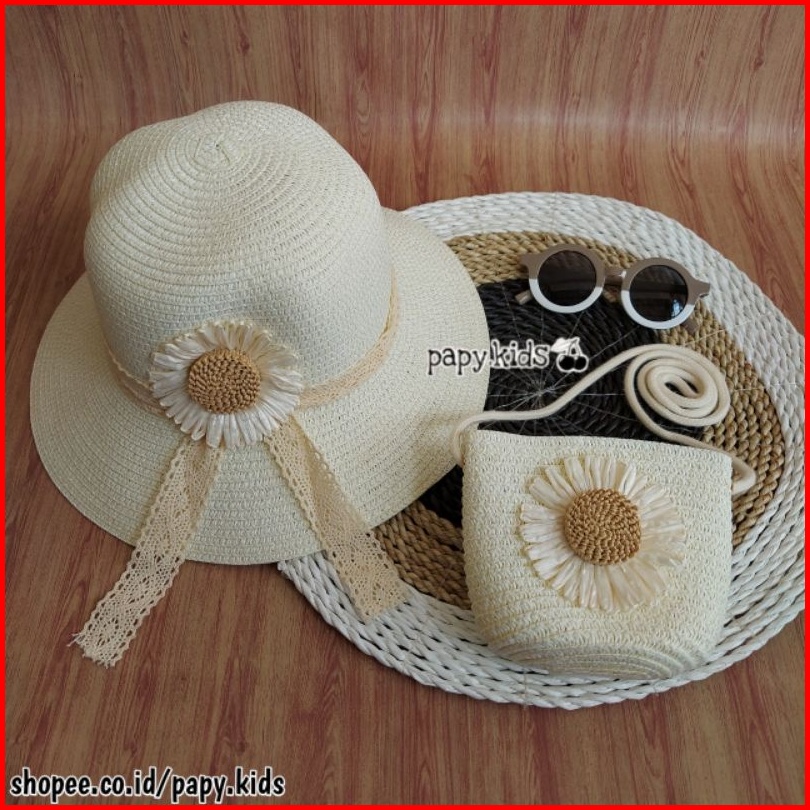 Topi Pantai Set Tas Bunga Daisy Pst3 Smmer Hat