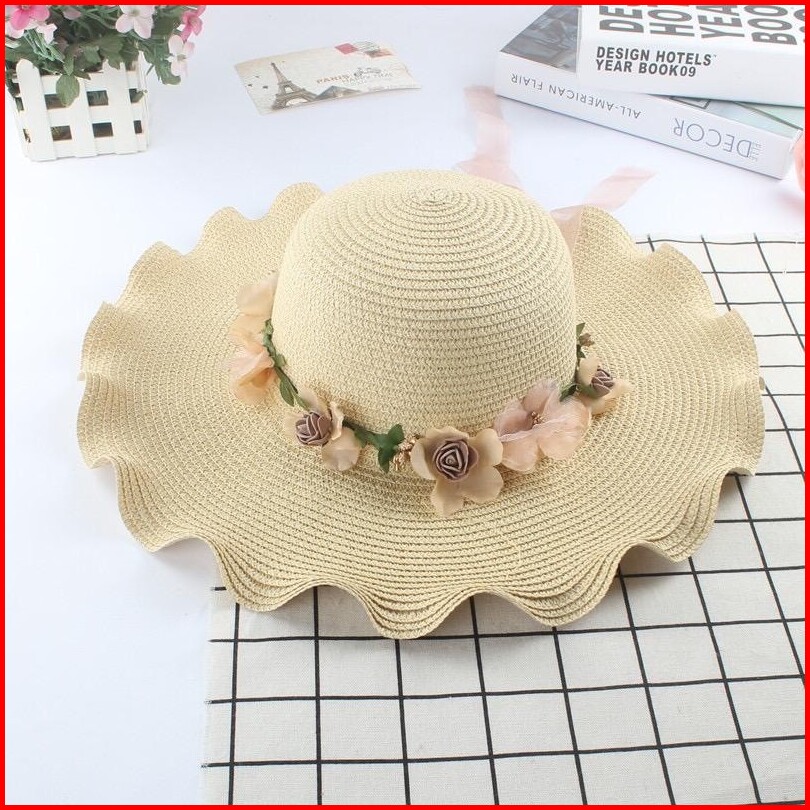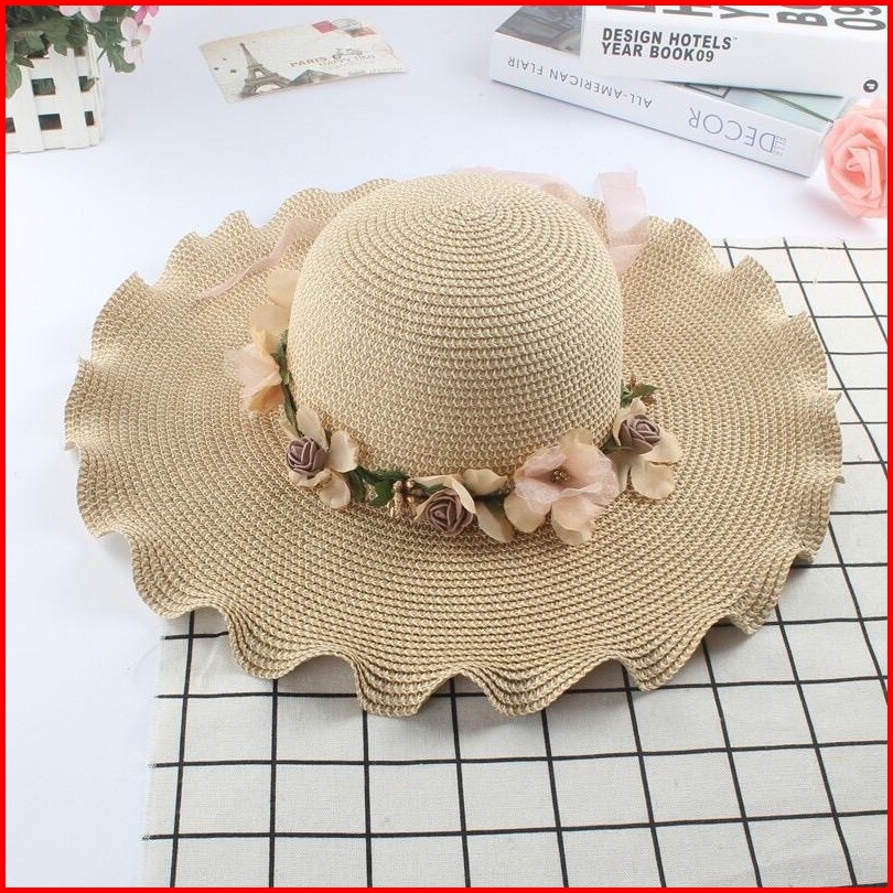 Topi Pantai Gelombang Bunga Topi Pantai Import Summer Hat Delima12
