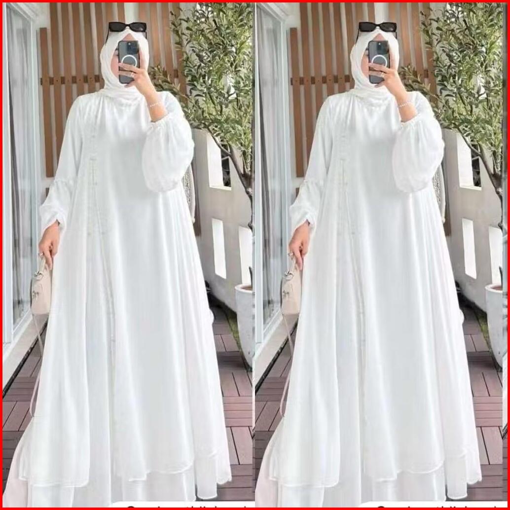Natasya Dress Ceruty Babydoll Full Furing Abaya Kekinian Aplikasi Mute Mewah Pakaian Wanita Muslimah