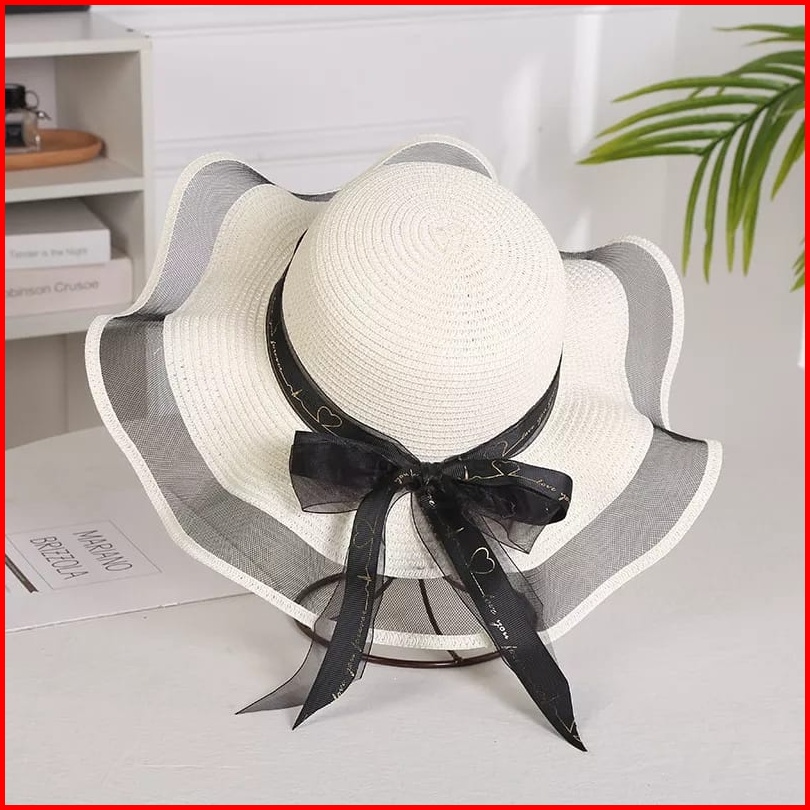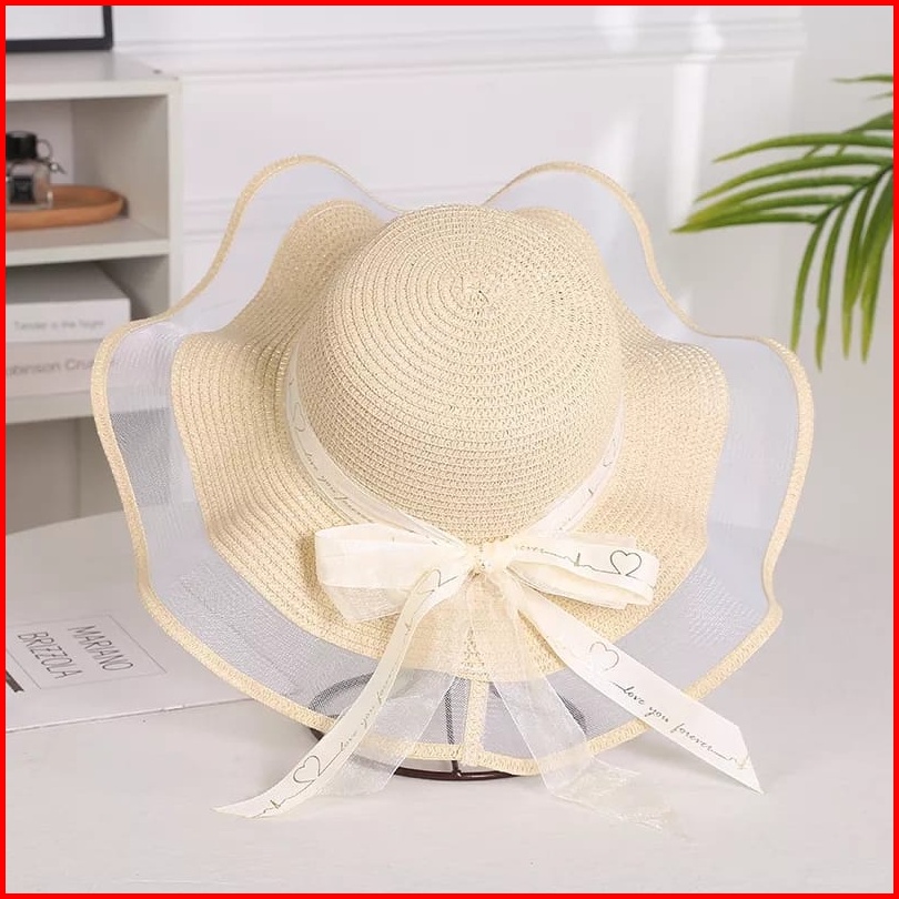 Lf - Topi Pantai Gelombang Jala Tile Summer Hat Topi Pantai Wanita Simple Promo