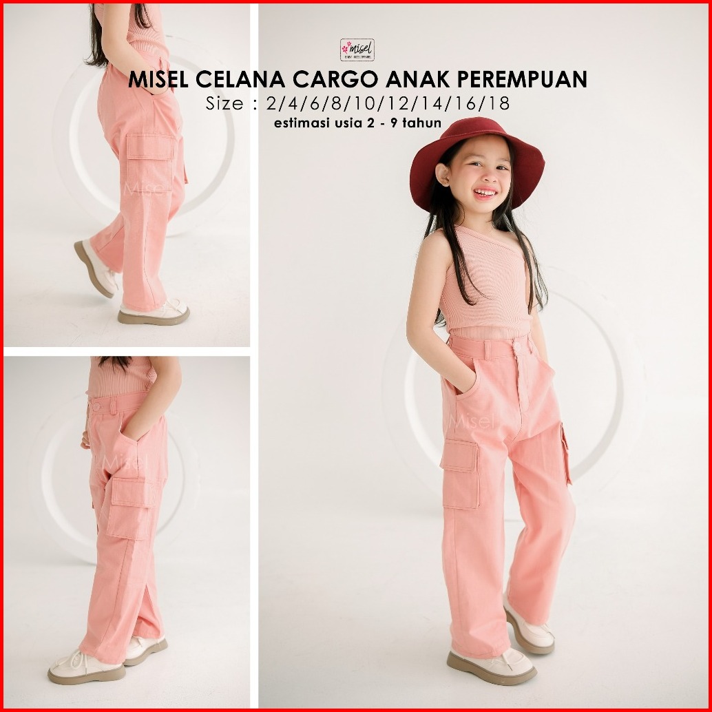 Misel Celana Panjang Cargo Anak Perempuan Celana Cargo Pdl Anak Cewek 2-9 Tahun