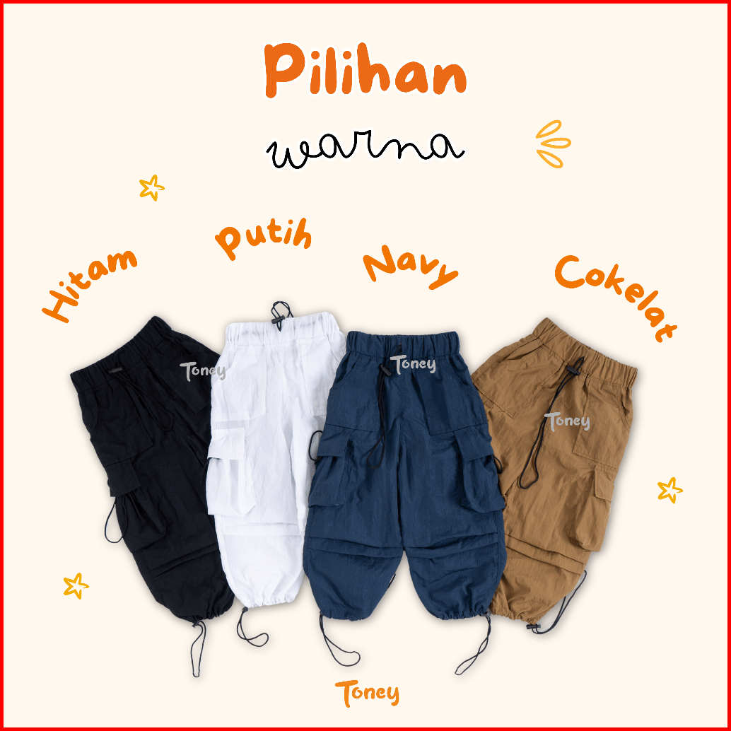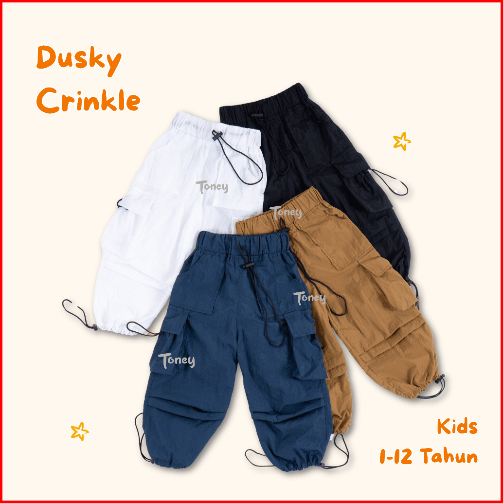 Toney - Celana Anak Laki-laki Perempuan Cargo Dusky Bahan Crinkle Parasut Usia 1-12tahun