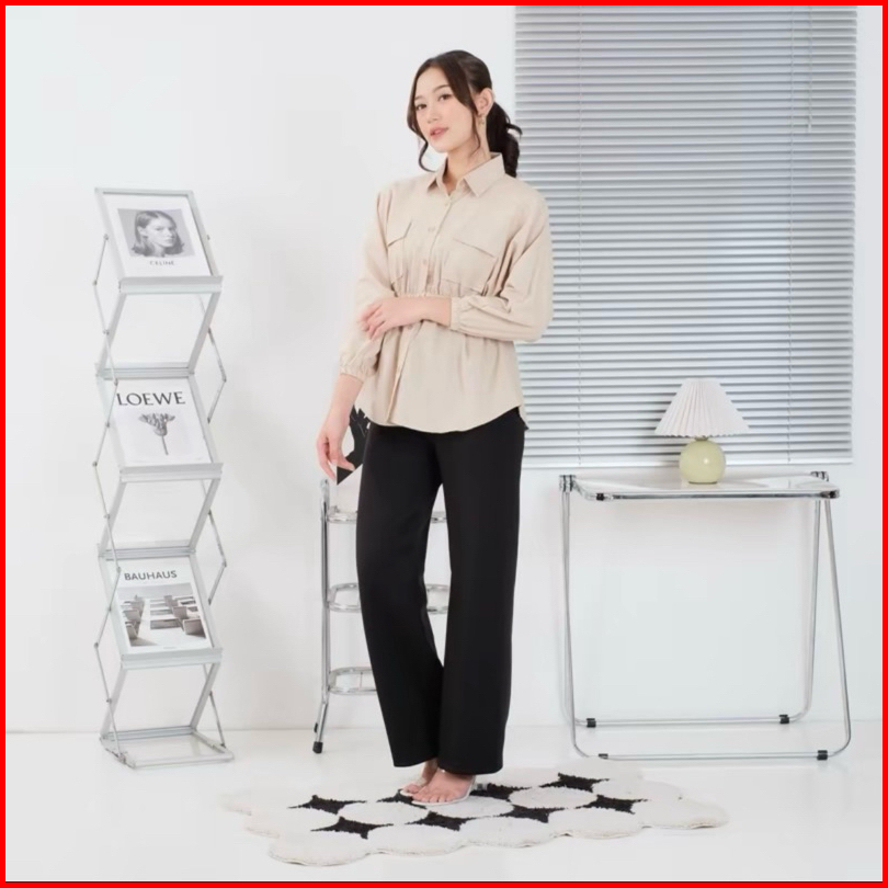 Beena Top Blouse Atasan Wanita Kemeja Linen Serut Saku Depan