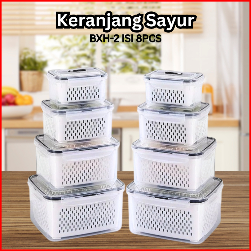 8pcs Keranjang Saringan Pengering Sayur Buah Serbaguna Kotak Penyimpanan Multifungsi Kulkas Bxh-1 2