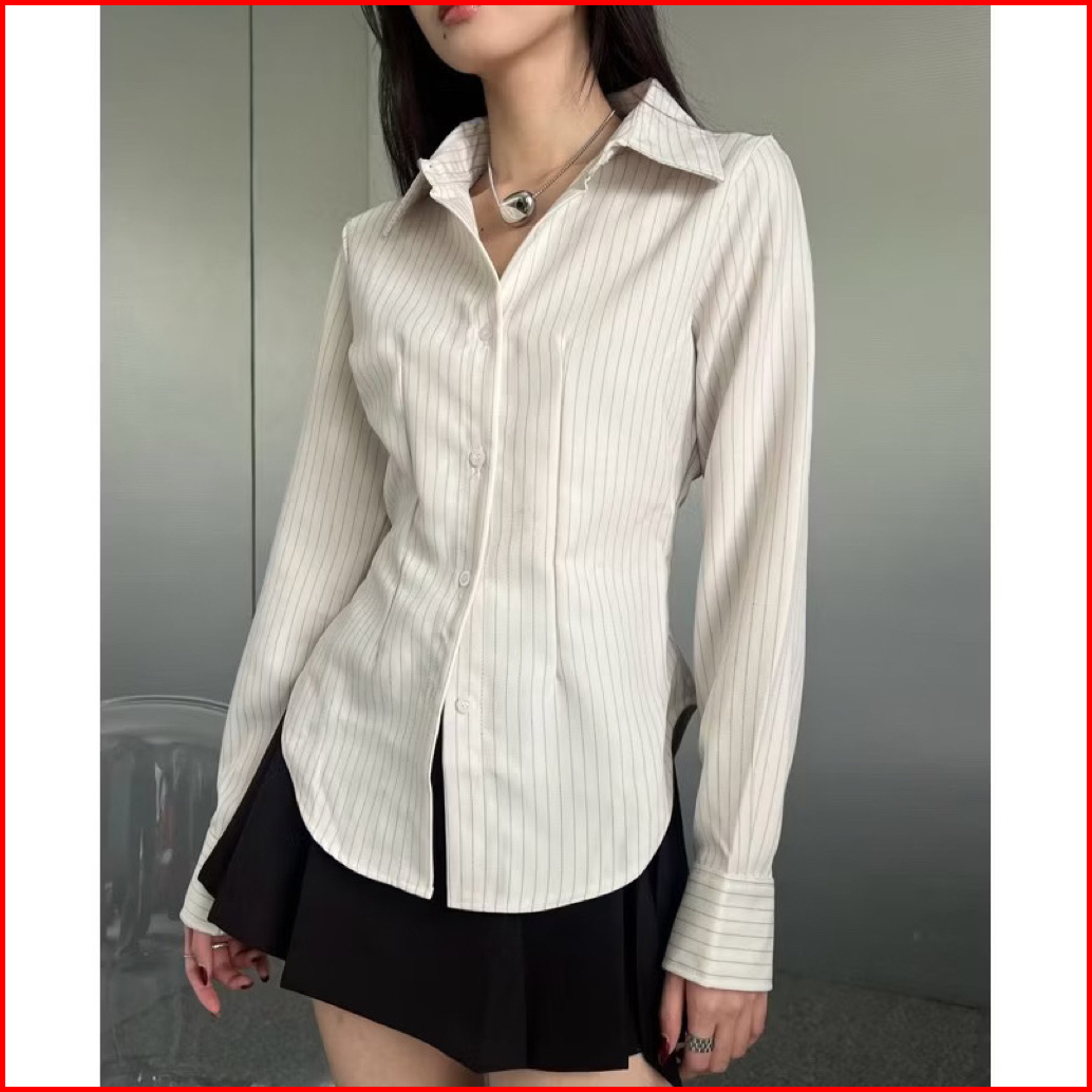 Terasayu - Luna Stripe Kemeja Wanita Fitted - Kemeja Garis Slim Fit - Kemeja Fit Body