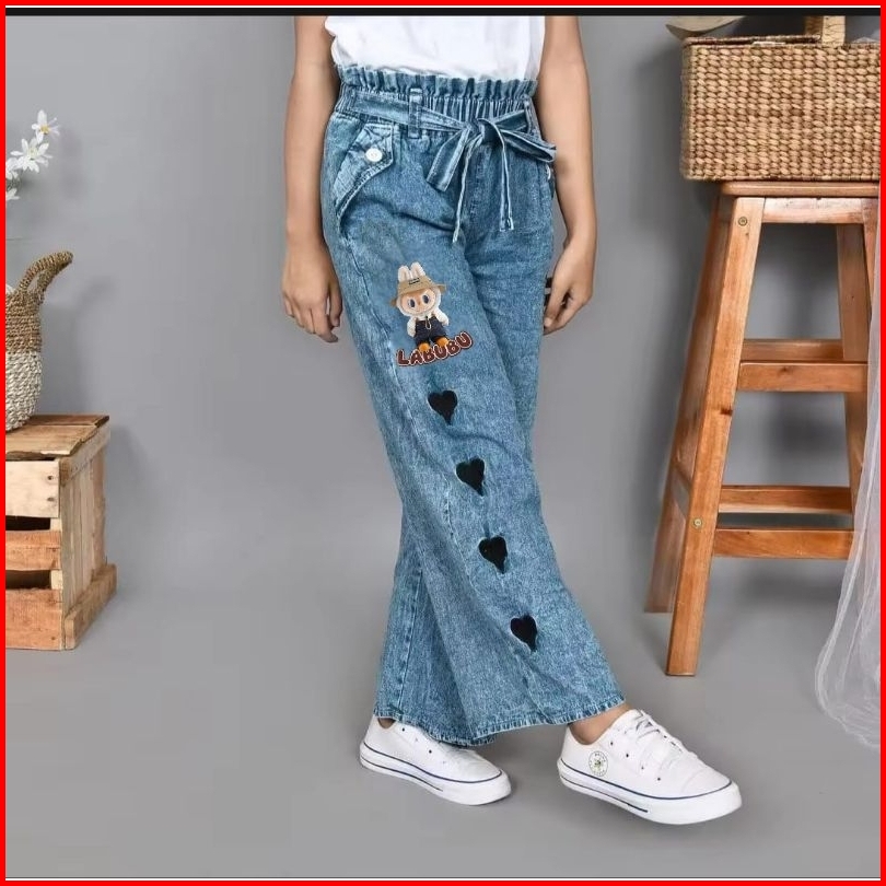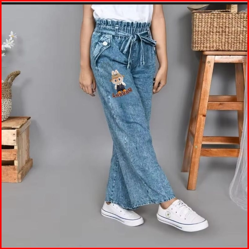 Free Ongkir Celana Kulot Jeans Anak Labubu Boba Terbaru Usia 6 -17 Tahun
