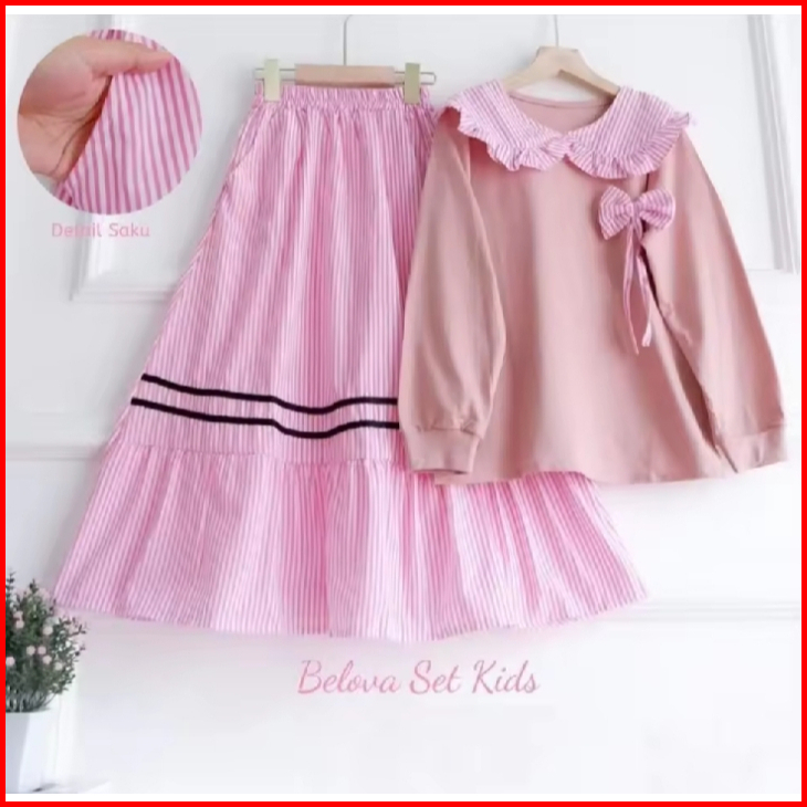 Setelan Belova Set Kids Setelan Rok Anak Perempuan Usia 4 Sampai 12 Tahun