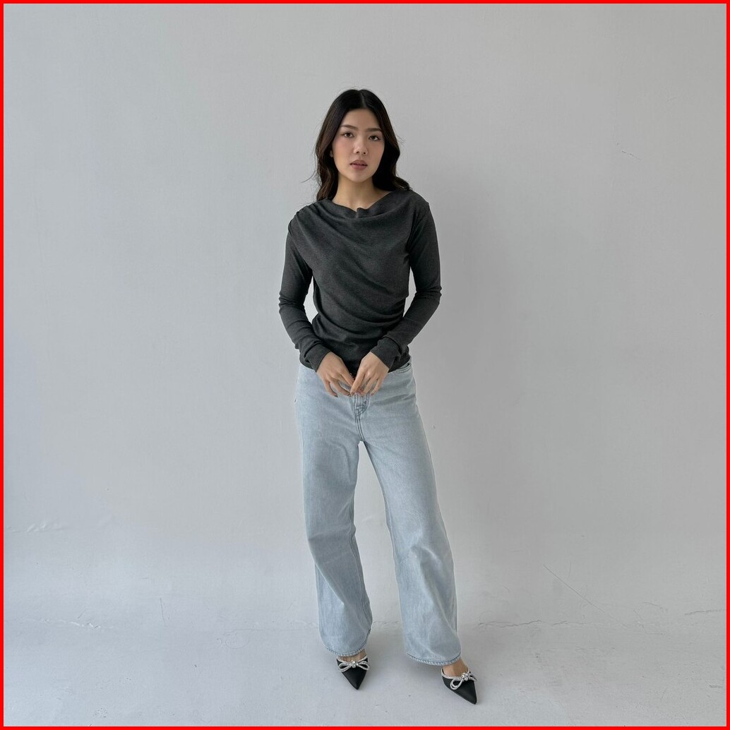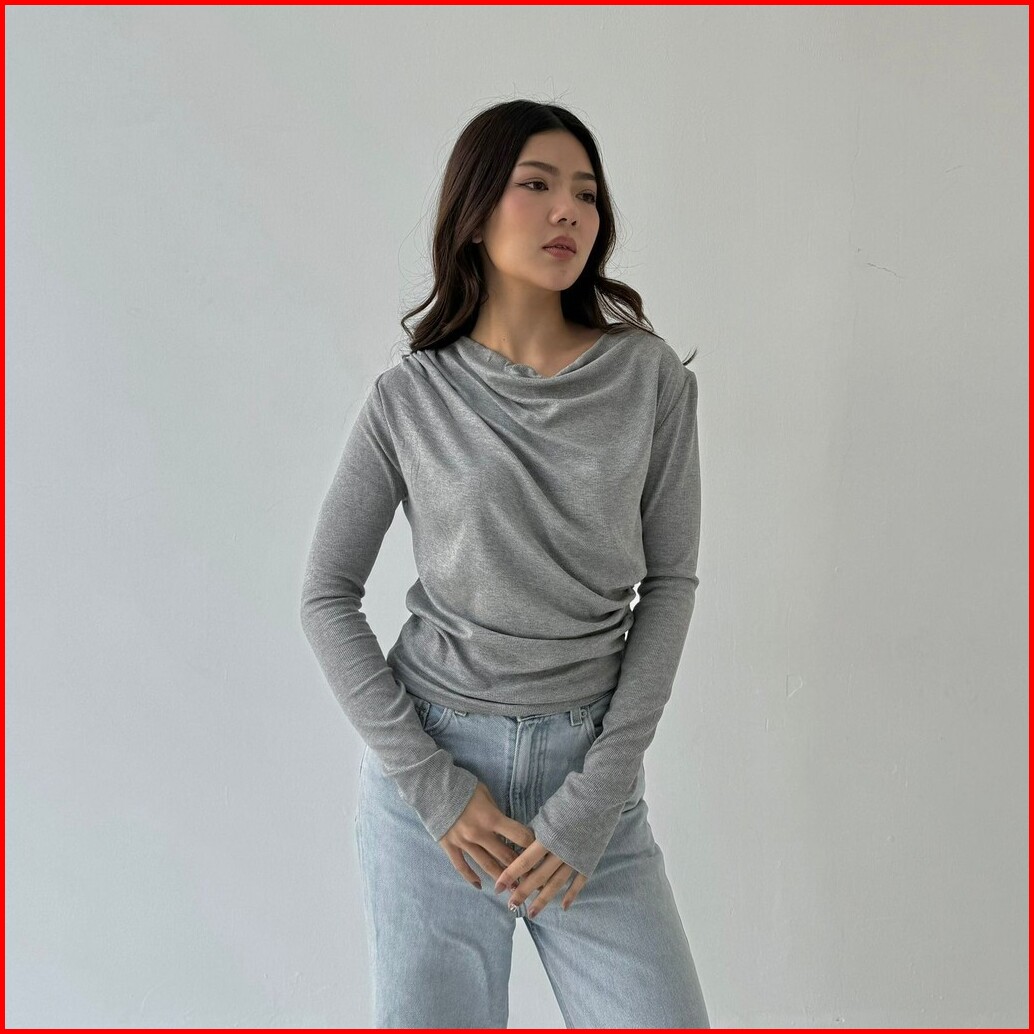 Atasan Wanita Lengan Panjang April Top Korean Look Knit Rib Korean Style