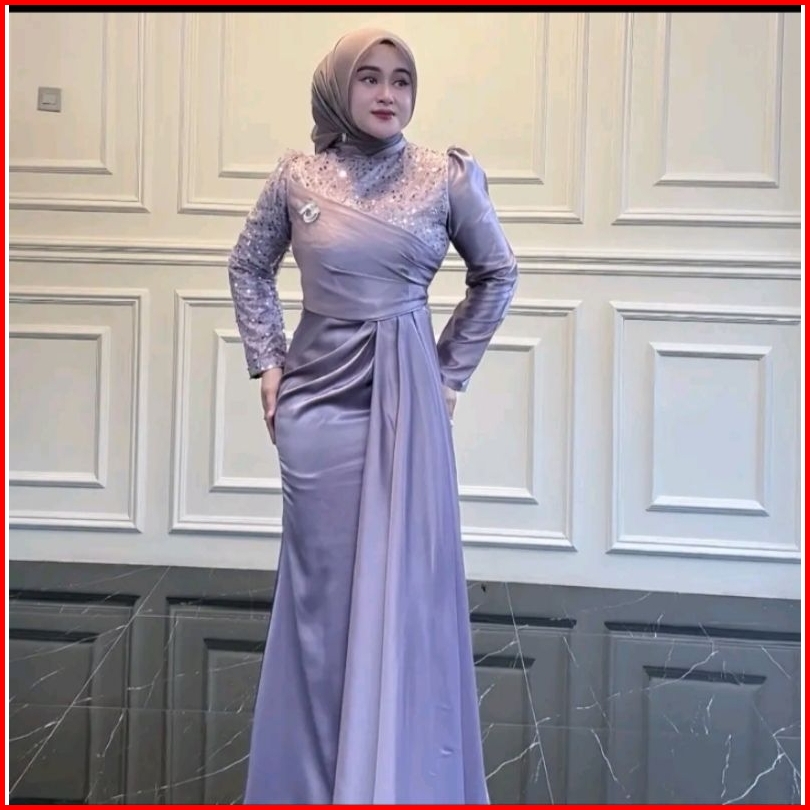 Amora Dress Satin Velvet Mix Tile Squin Premium Dress Pesta Wanita Jumbo S M L Xl Xxl Gamis Kondangan Wanita Terbaru 202