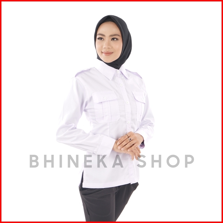 Kemeja Pdh Putih Wanita Lengan Panjang Dan Lengan Pendek Kemeja Pdh Kerah Hitam