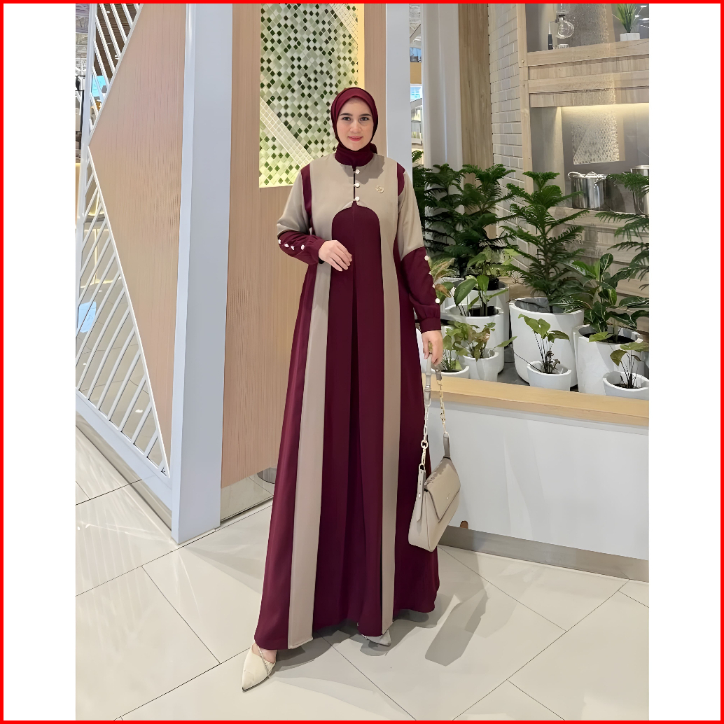 Gamis Lebaran Super Mewah Model Terbaru 2026 Aura Bahan Ceruty Baby Doll Dua Layer Full Furing