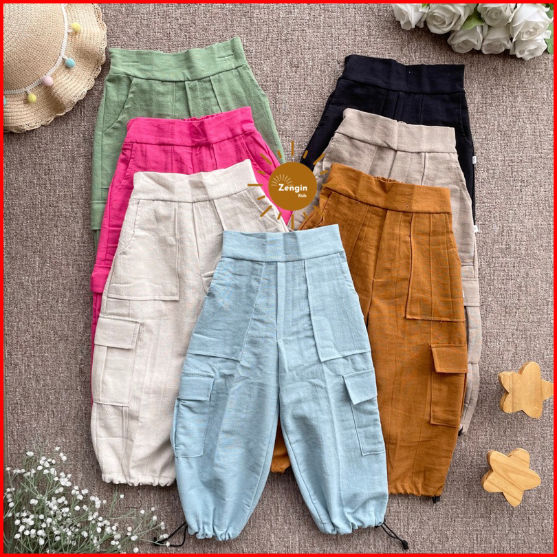 2-6th Joyi Celana Anak Joger Cargo Kargo Serut Linen Bangkok