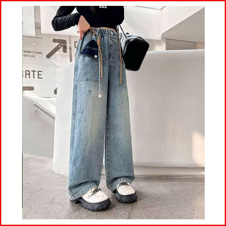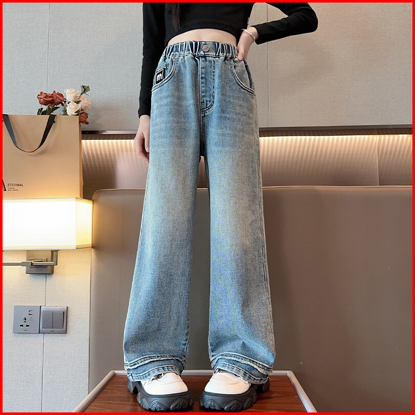 Princess Anak 8-15 Tahun Celana Jeaans Wanita Highwaist Kulot Jeans Pinggang Yang Dapat Diisesuaikan High Waist Kulot Je